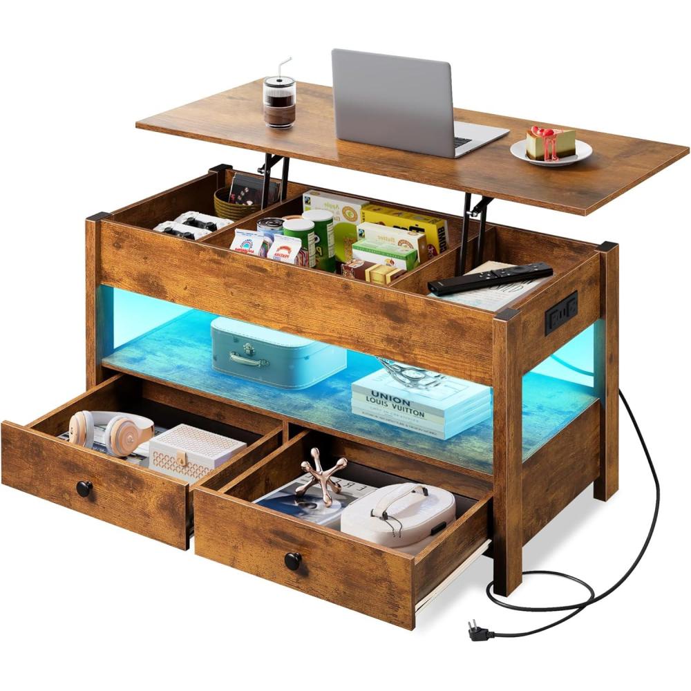 imageWLIVE Coffee Table Lift Top Coffee Table with 2 Drawers Large Hidden Hidden Compartment and Open Shelf Lift Tabletop Dining Table for Living Room BlackRustic Brown