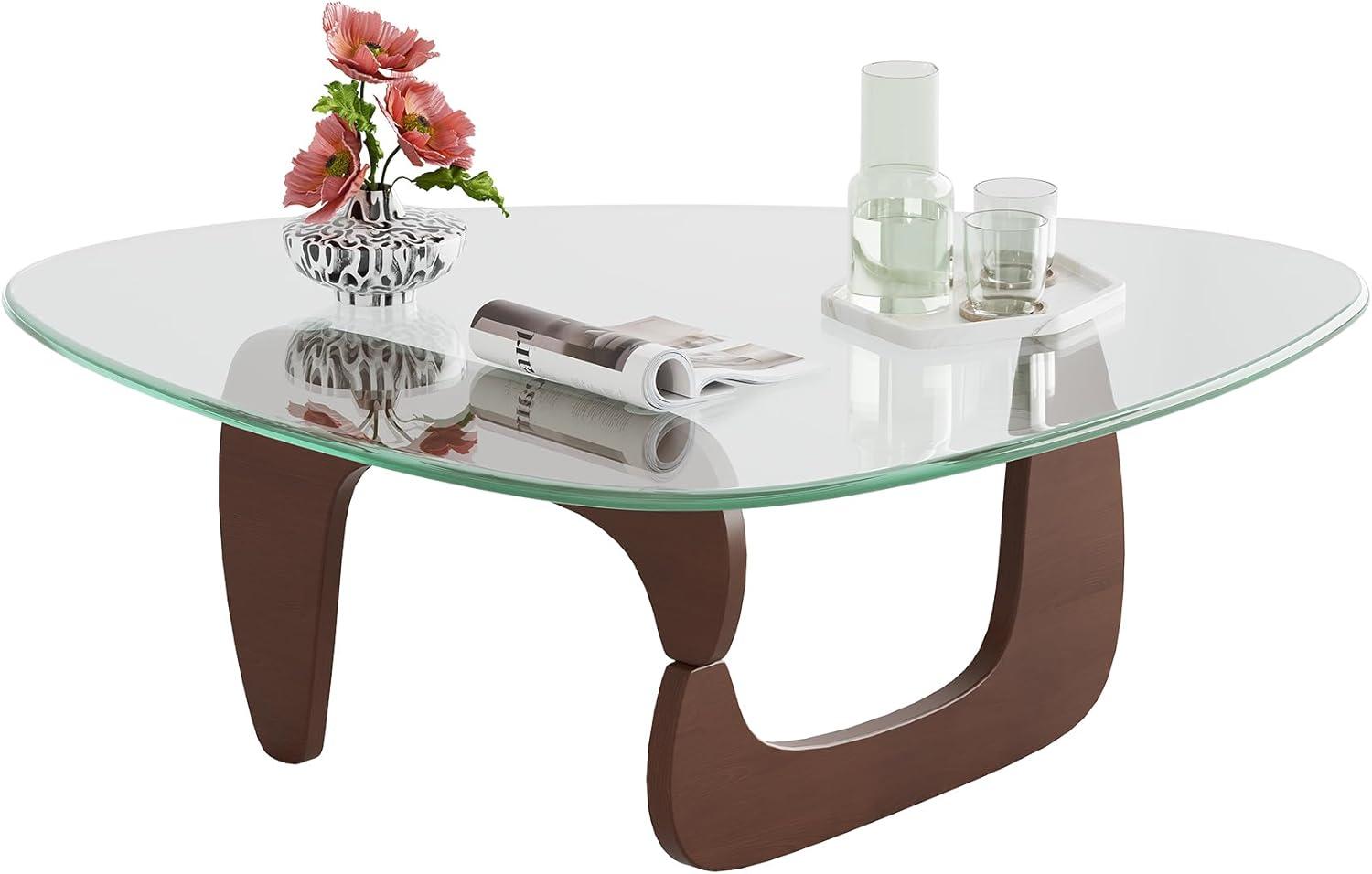 WLIVE Coffee Table, Small Glass Coffee Table with Solid Wood Legs, 32.7" Mid Century Triangle Living Room Tables, Modern Center Table for Small Spaces Living Room, Reception, Office, Natural(Espresso)
