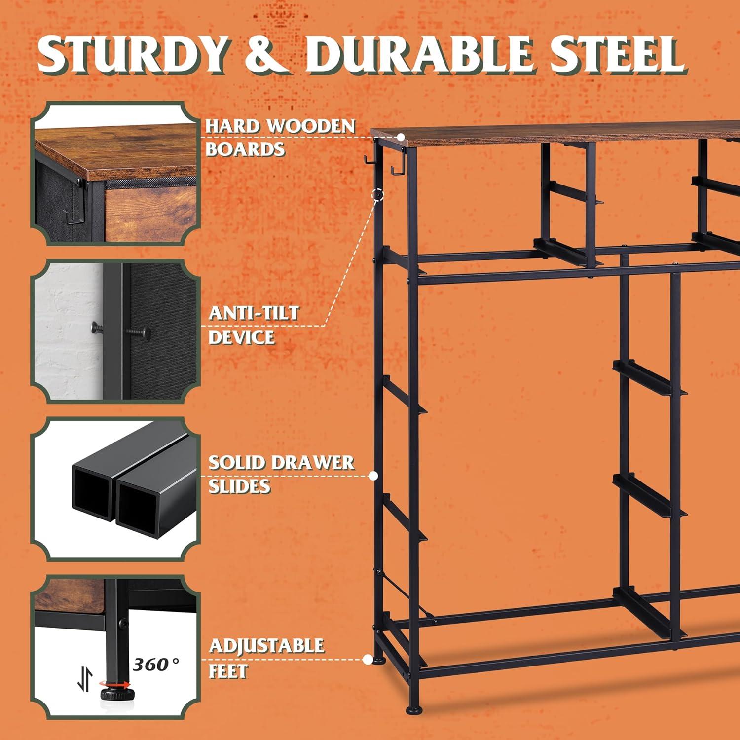 ✅【Stylish and Versatile】 The furniture is made of sturdy steel frame support, MDF wooden waterproof countertop, and premium non-woven fabric. The back is reinforced with tension bars to enhance overall stability, making the drawer very easy to slide in and out and align correctly. Ensure safe and worry free use. The wooden top can bear up to 70 pounds, providing a sturdy surface for items such as televisions or display vases, lights, and books.
