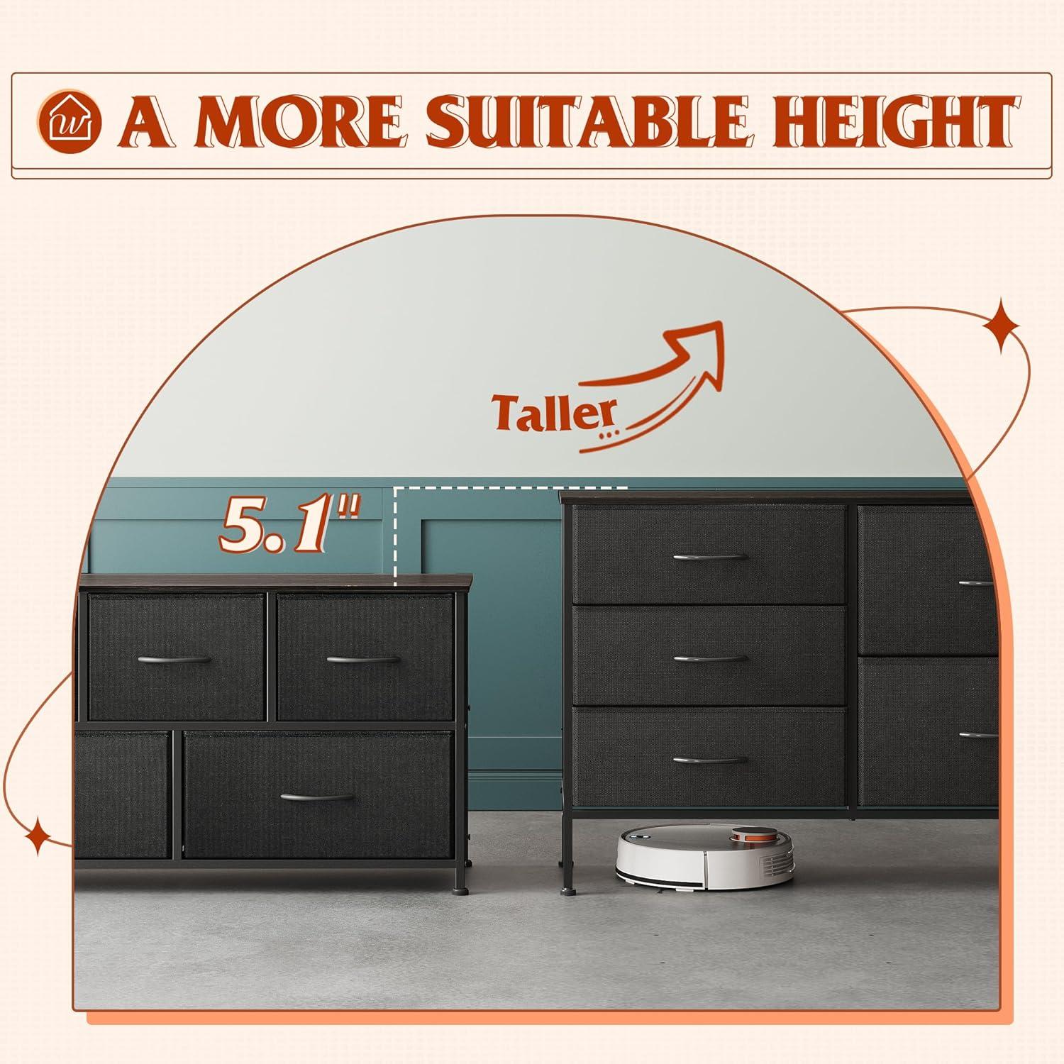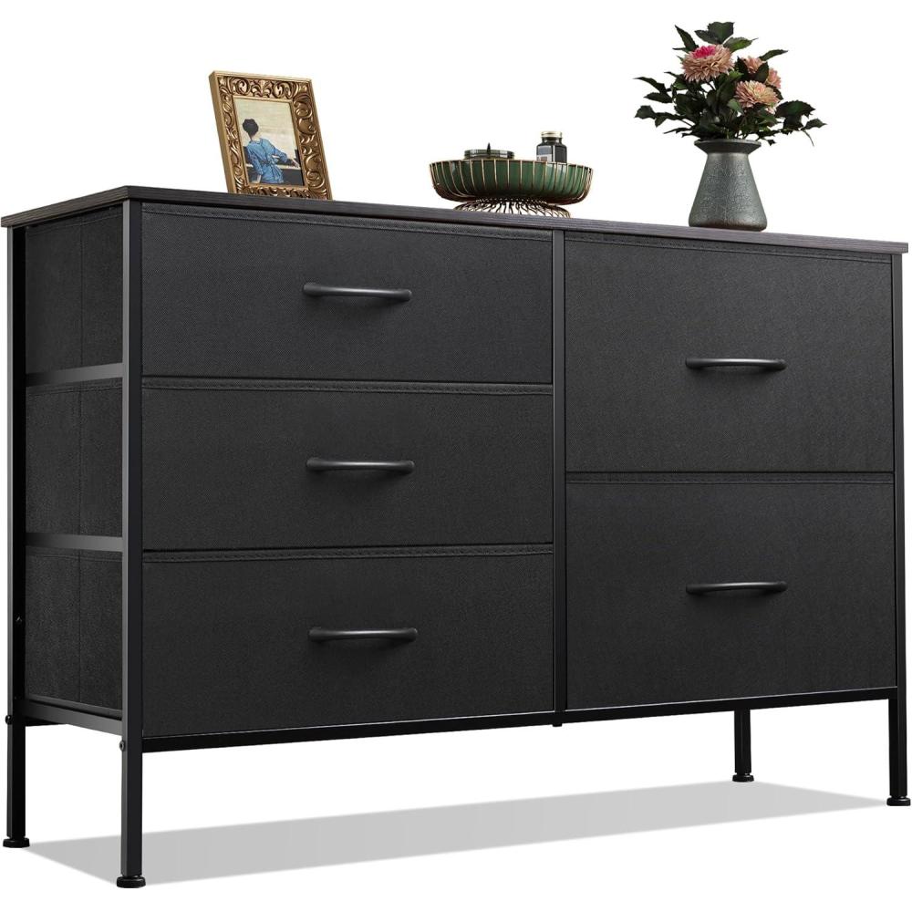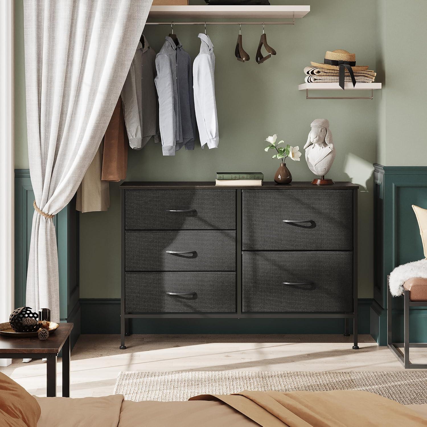 WLIVE Dresser for Bedroom with 5 Drawers, Wide Dressers with Drawer Organizers, Chest of Drawers, Fabric Dresser for Living Room, Closet, Hallway, Charcoal Black Wood Grain Print(Charcoal Black Wood Grain Print)