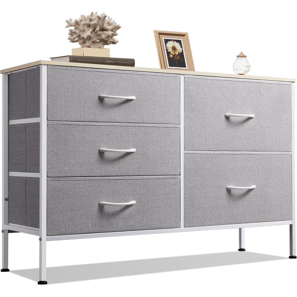 WLIVE Dresser for Bedroom with 5 Drawers, Wide Dressers with Drawer Organizers, Chest of Drawers, Fabric Dresser for Living Room, Closet, Hallway, Charcoal Black Wood Grain Print(Light Grey)