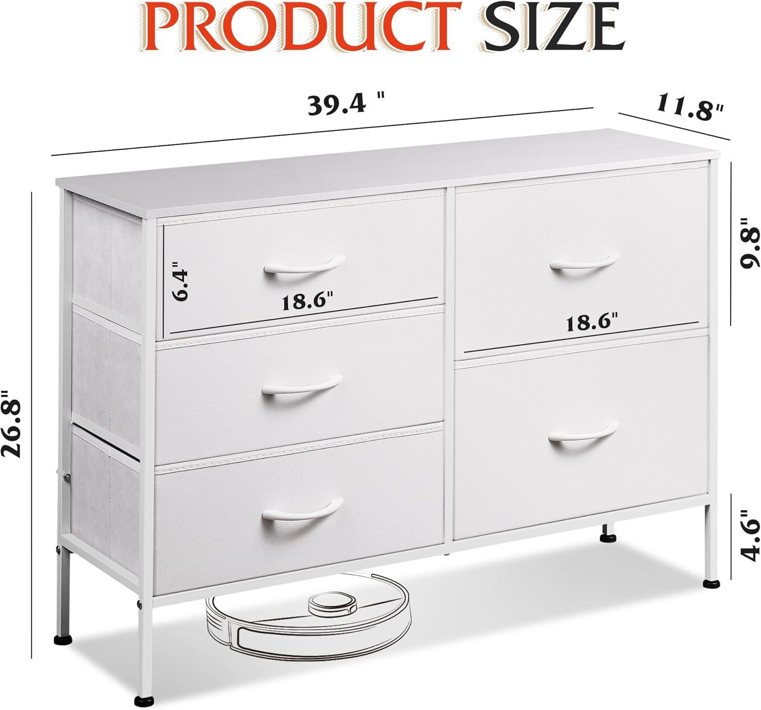 Overall Dimension: The wide chest of drawers measures 39.4″ L x 11.8″ W x 26.8″ H. With detailed instructions and all hardware needed, the dresser for bedroom is easy to assemble.