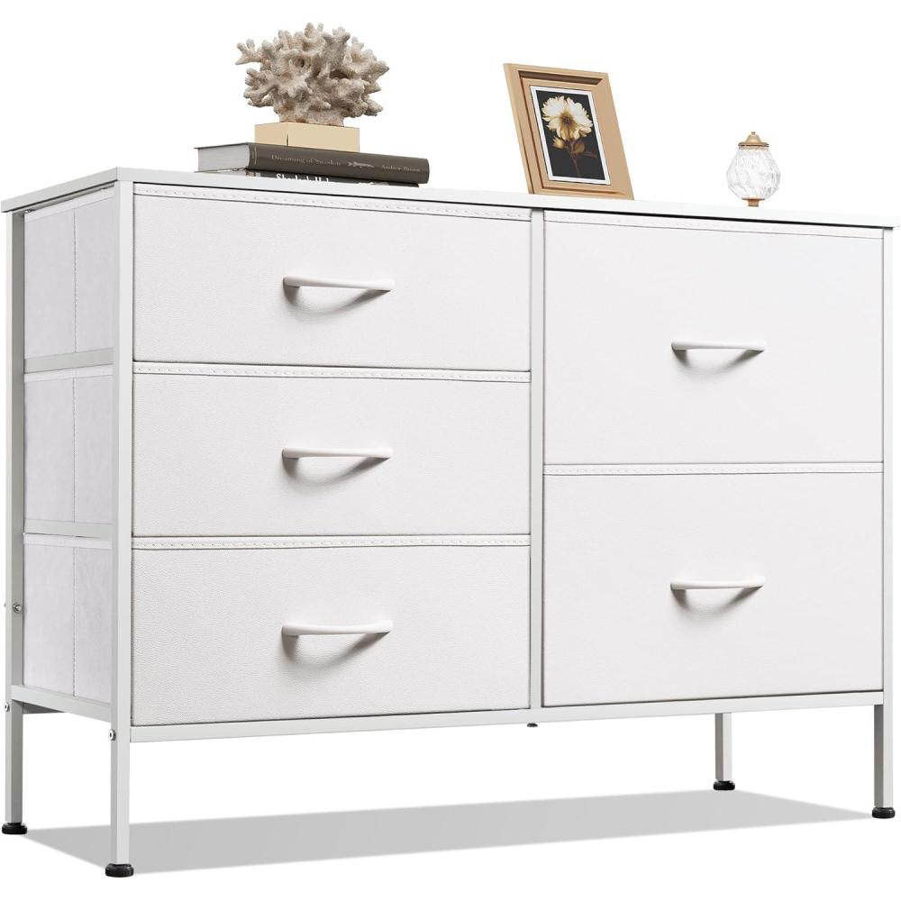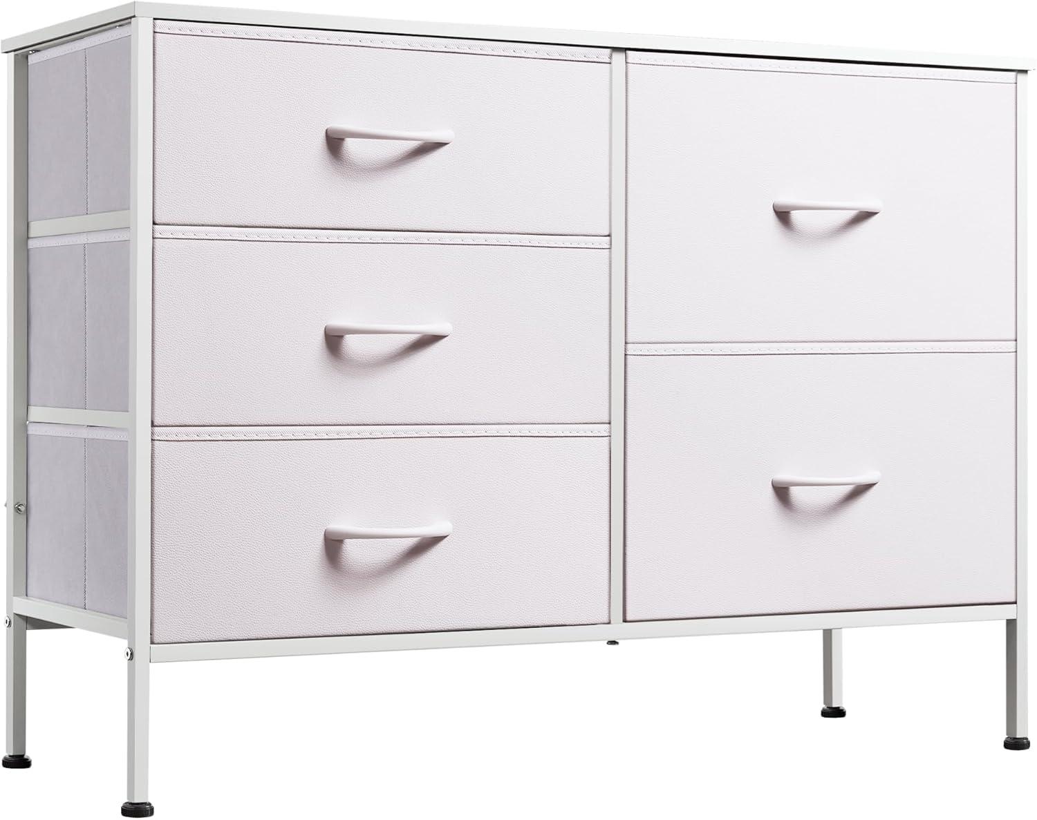 WLIVE Dresser for Bedroom with 5 Drawers, Wide Dressers with Drawer Organizers, Chest of Drawers, Fabric Dresser for Living Room, Closet, Hallway, Charcoal Black Wood Grain Print(White)