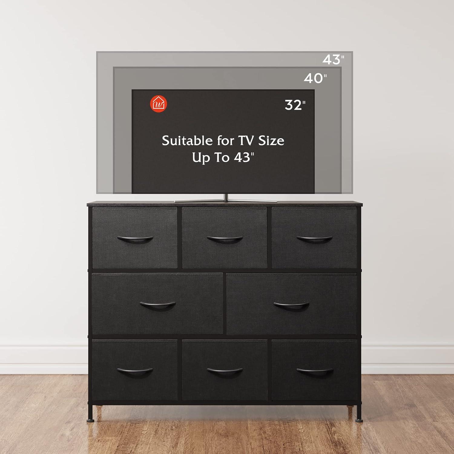 Sturdy and Durable: The bedroom dresser can also be TV stand for small-size TV; With strong steel frame, water-resistant top and high-grade fabric drawers, the dresser is designed for a long service time.