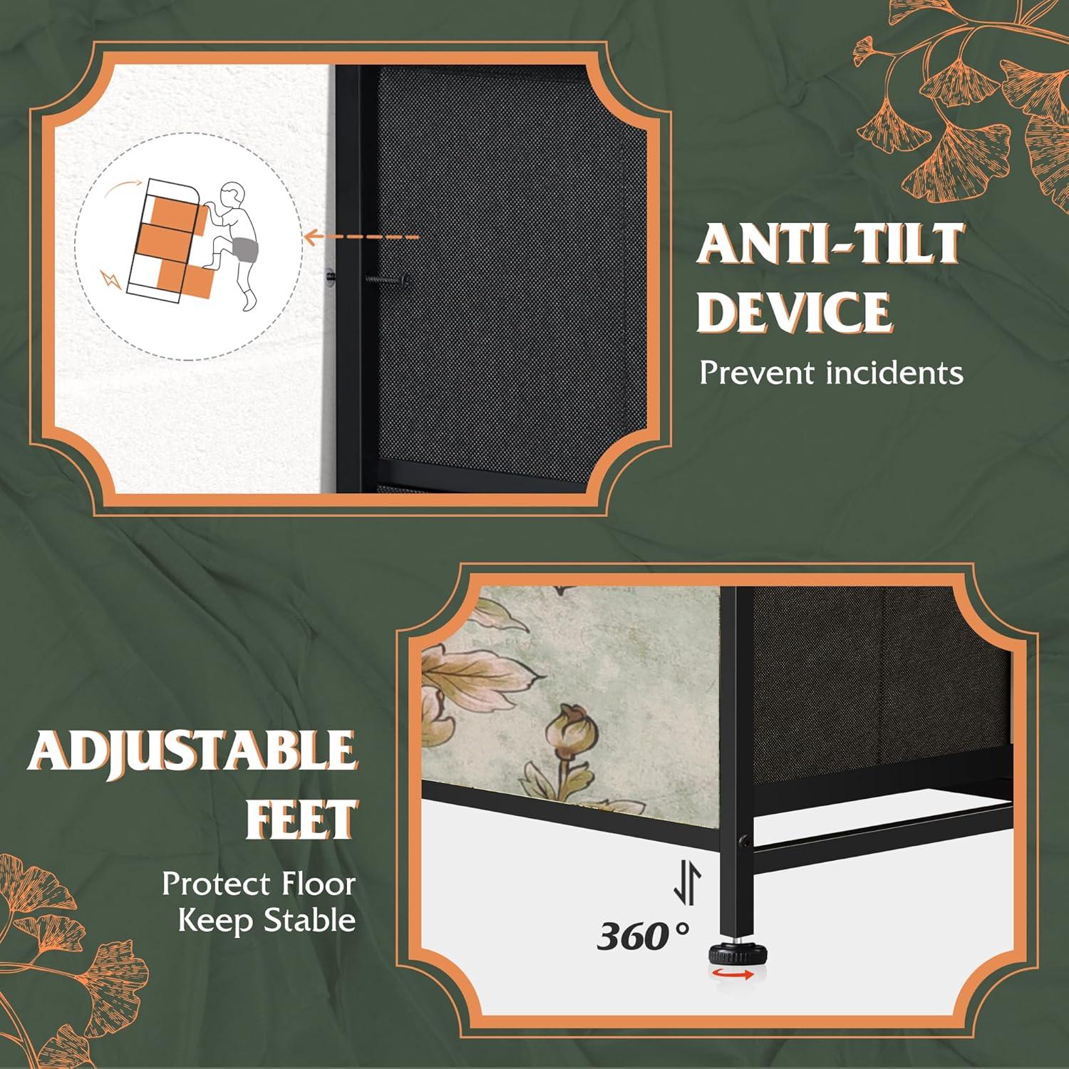 WLIVE Dresser for Bedroom with 8 Drawers, Wide Fabric Dresser for Storage and Organization, Chest of Drawers, Dressers for Living Room, Closet, Hallway, Dark Grey(Floral Painted)