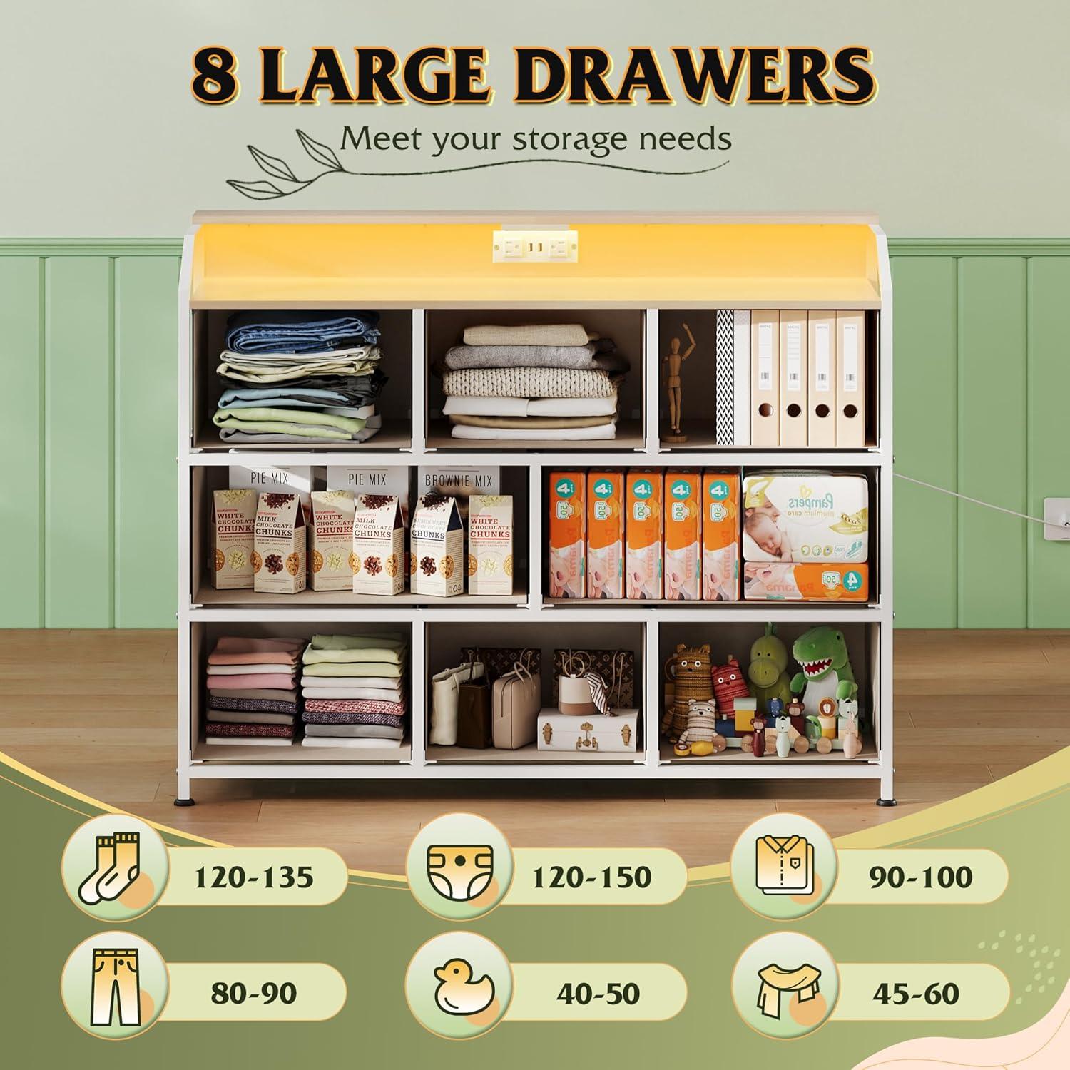 Roomy Storage Space: The 8 foldable deep drawers are spacious and provide endless organizational possibilities. Wooden top can place things you want to display or keep in reach, such as lamp, photos…