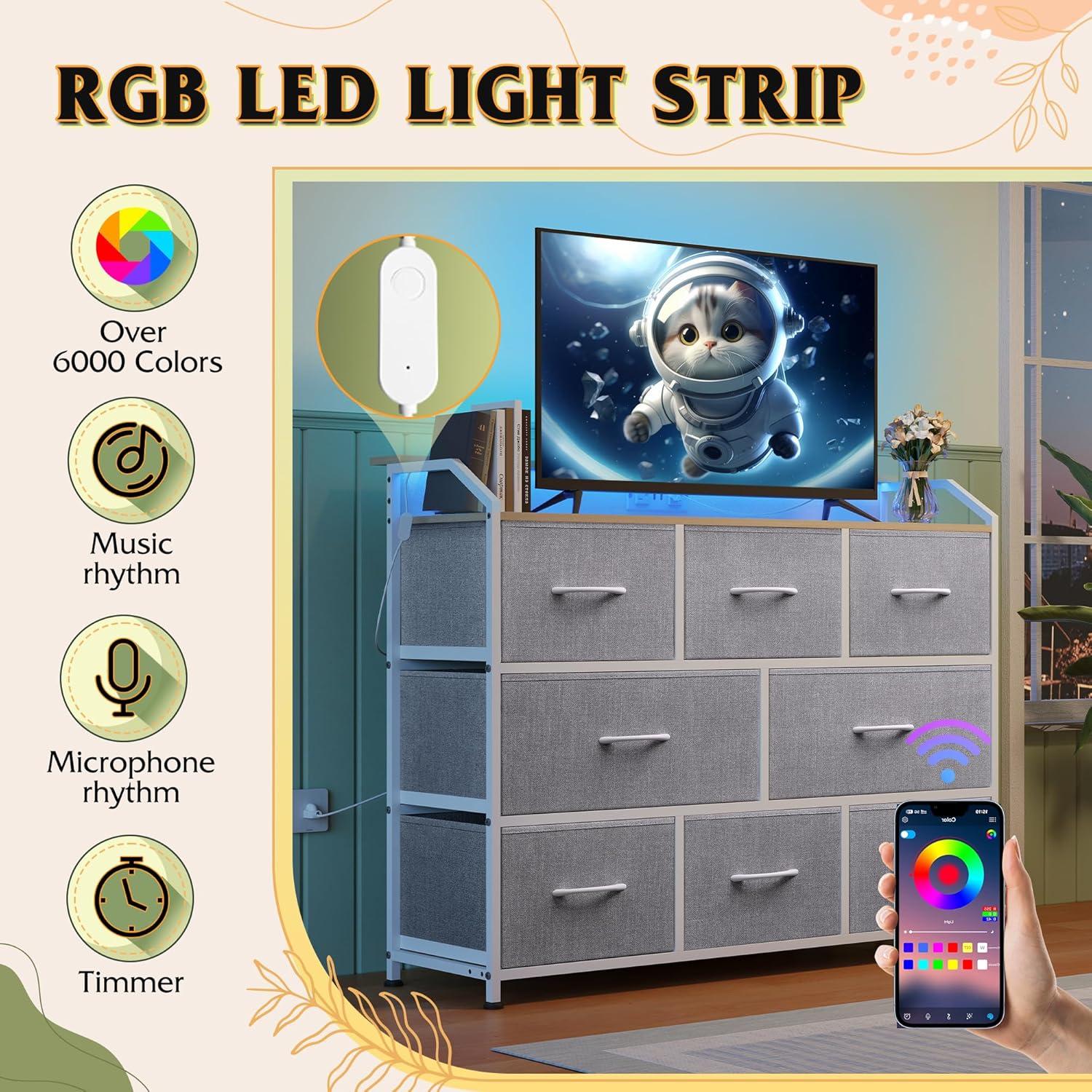 Sturdy and Durable: The bedroom dresser can also be TV stand for small-size TV; With strong steel frame, water-resistant top and high-grade fabric drawers, the dresser is designed for a long service time.