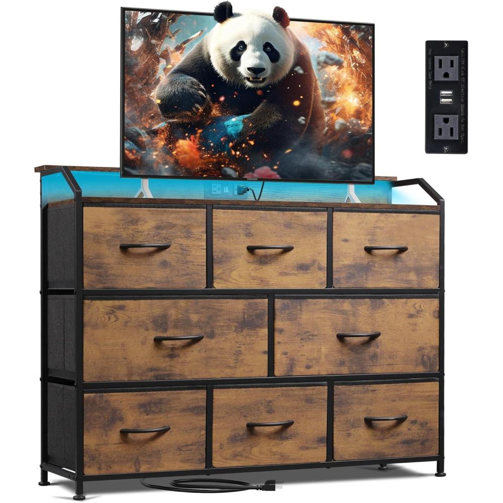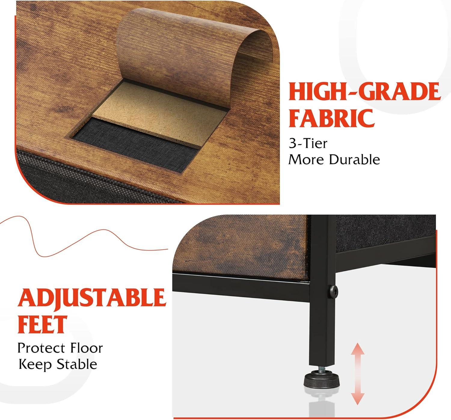 Sturdy and Durable: The bedroom dresser can also be TV stand for small-size TV; With strong steel frame, water-resistant top and high-grade fabric drawers, the dresser is designed for a long service time.