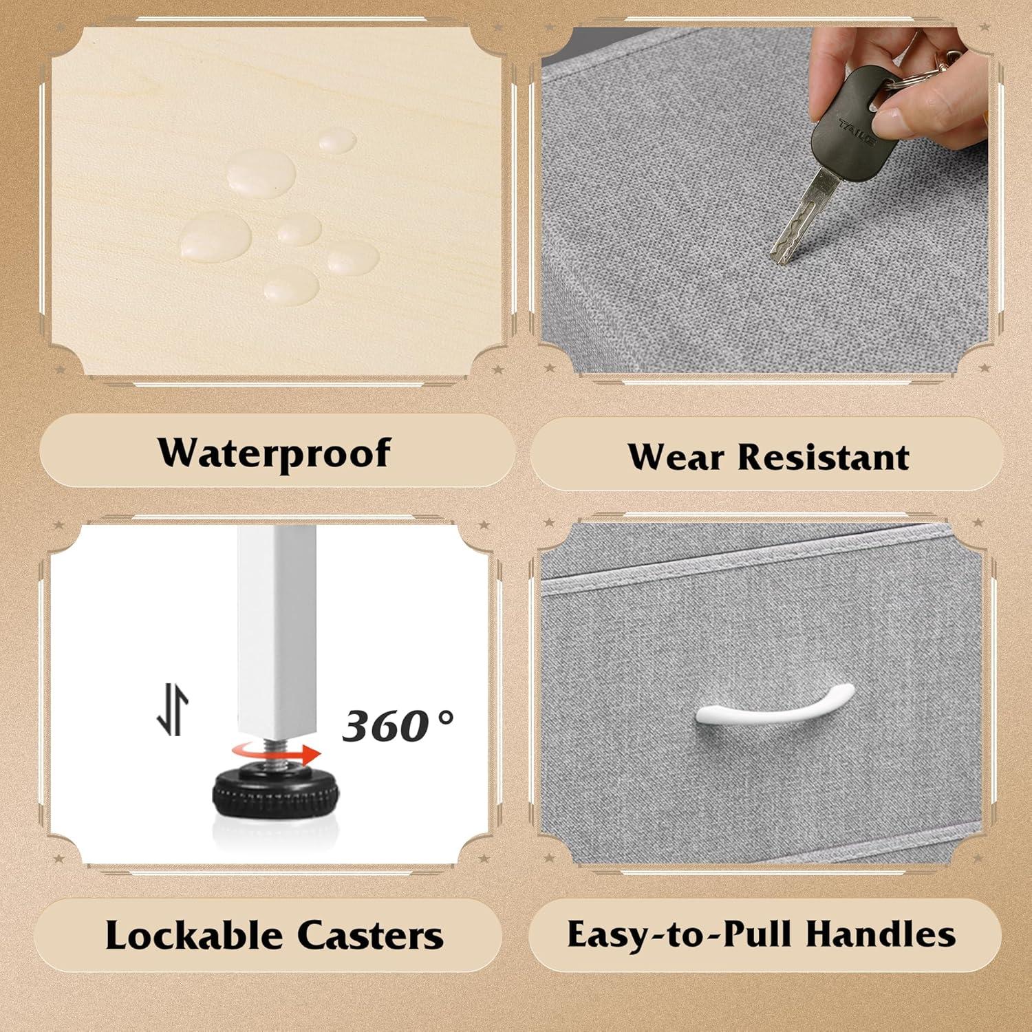 STURDY STRUCTURE: Strong steel frame and water-resistant wood top offer stable support and ensure years of use; High-quality non-woven fabric drawers is easy to clean