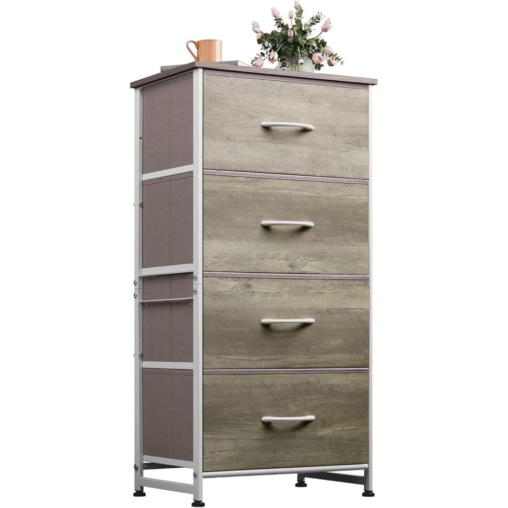 WLIVE Dresser with 4 Drawers, Storage Tower, Organizer Unit, Fabric Dresser for Bedroom, Hallway, Entryway, Closets, Sturdy Steel Frame, Wood Top, Easy Pull Handle, Greige Oak