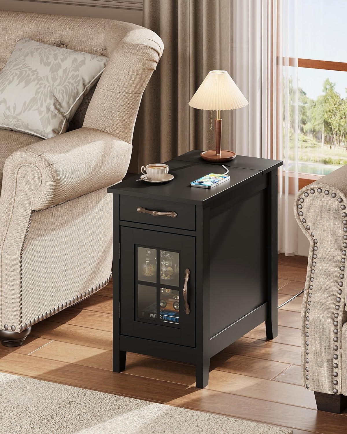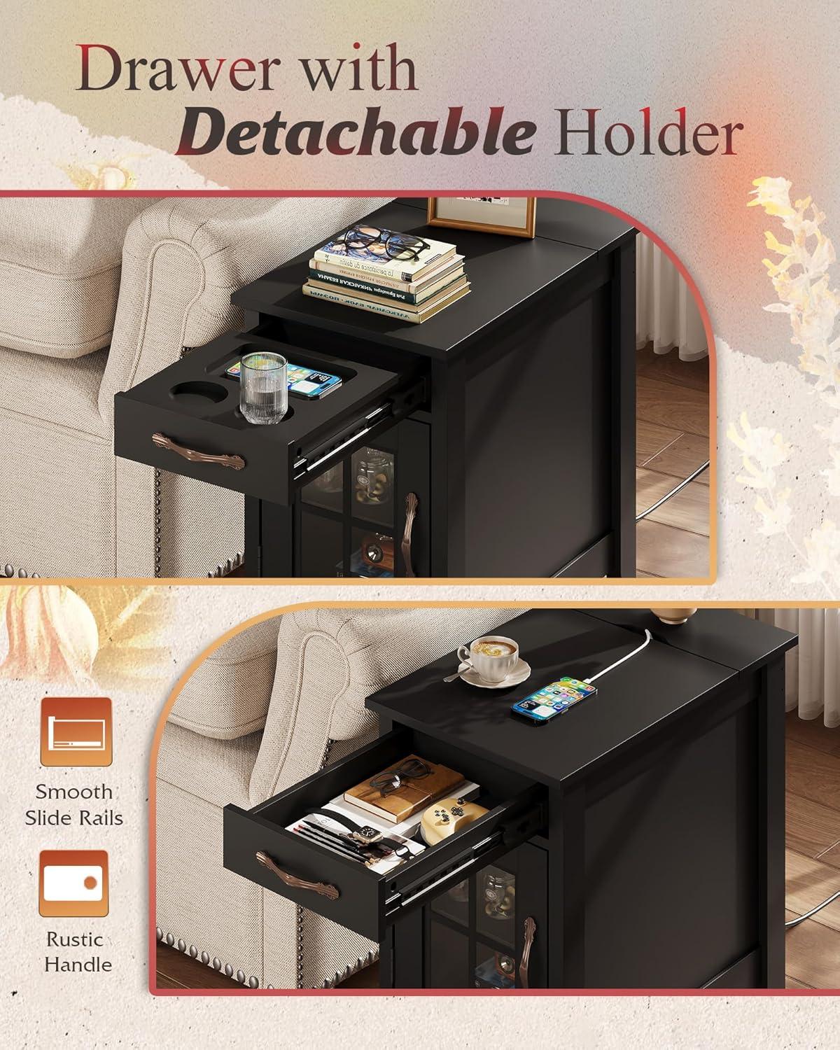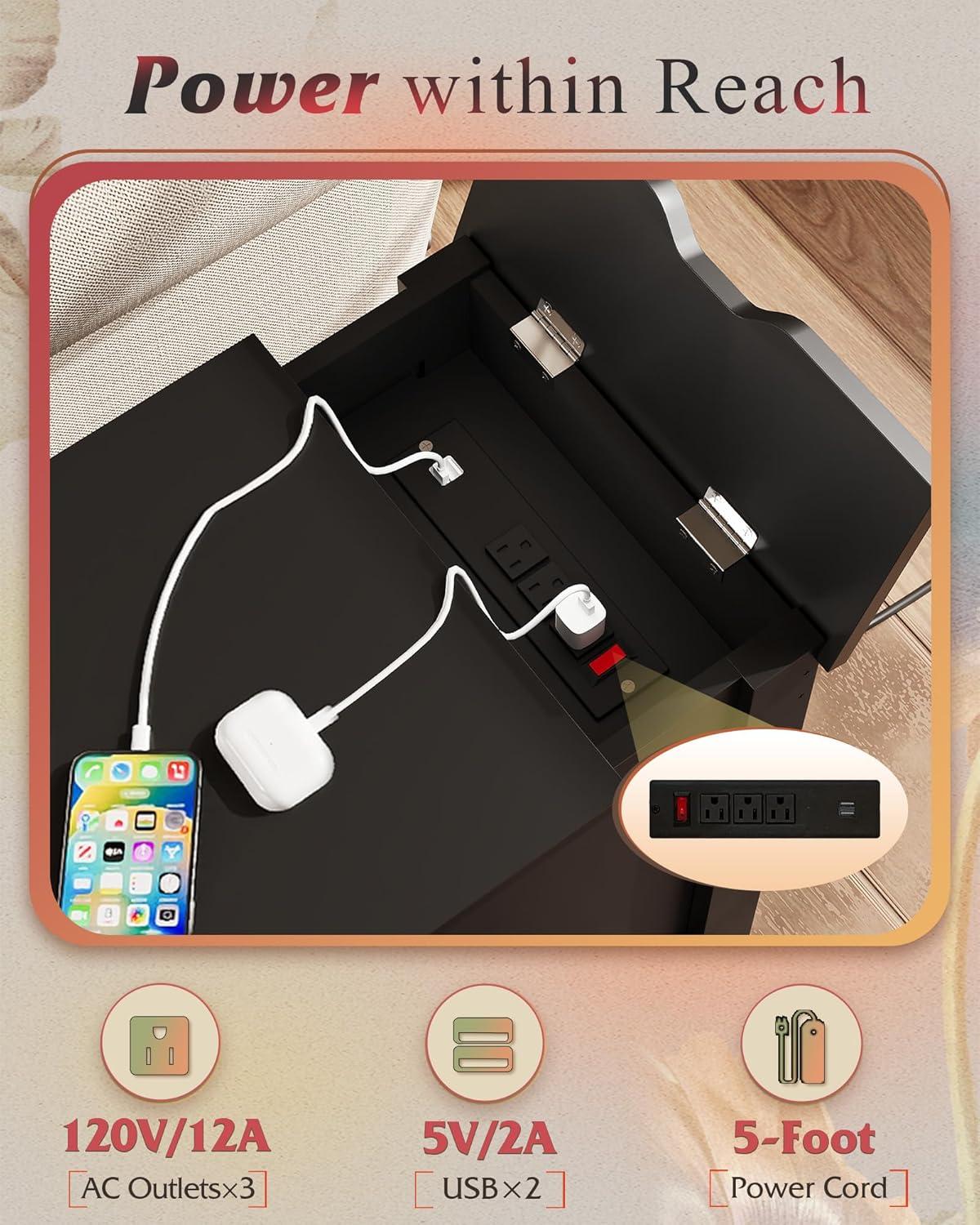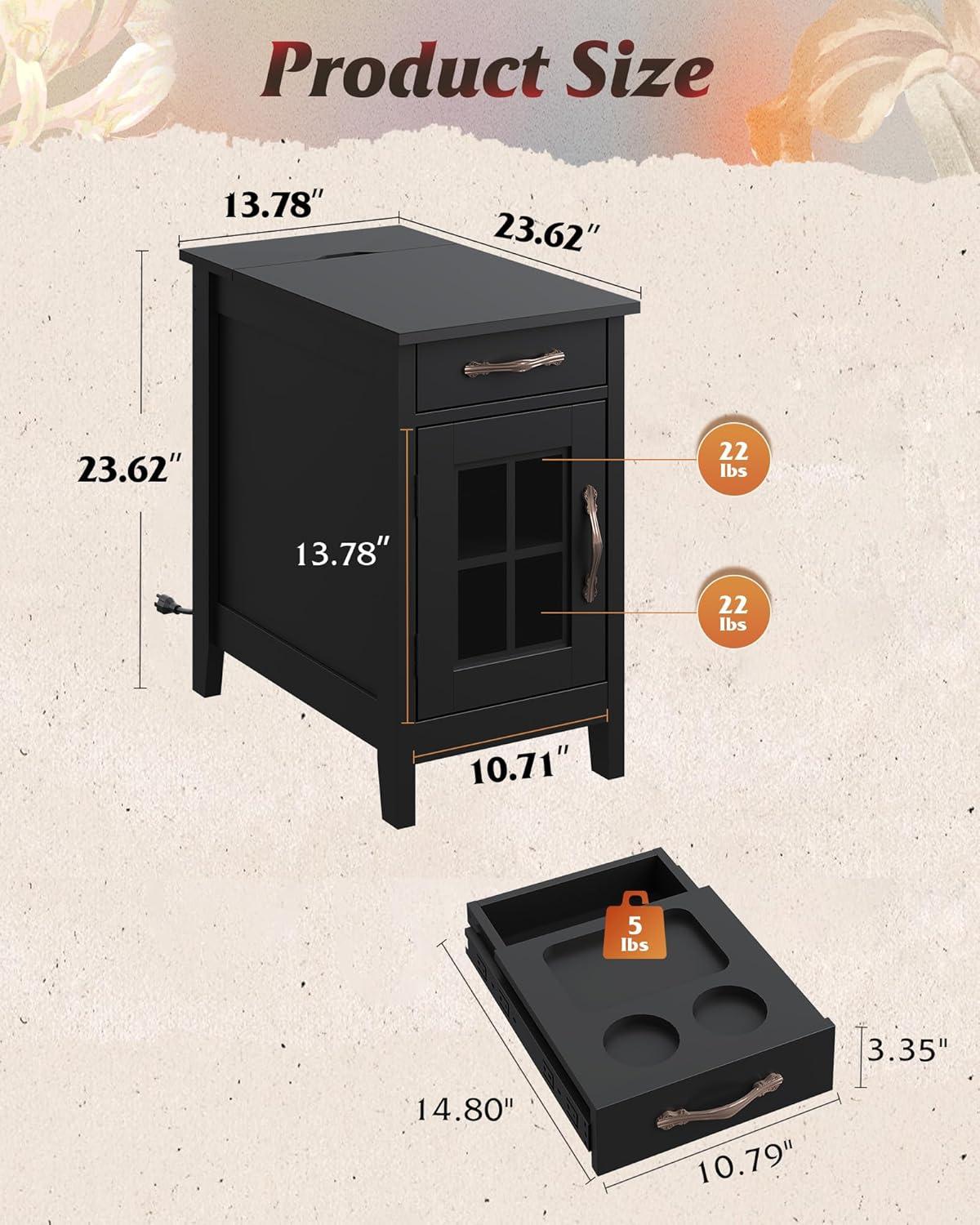 【End Table with Charging Station】This small end table has 2 AC outlets and 2 USB ports,which satisfies you to use multiple plugs simultaneously, keeping power at your fingertips and never worrying about charging when you use your electronic devices on the couch.
