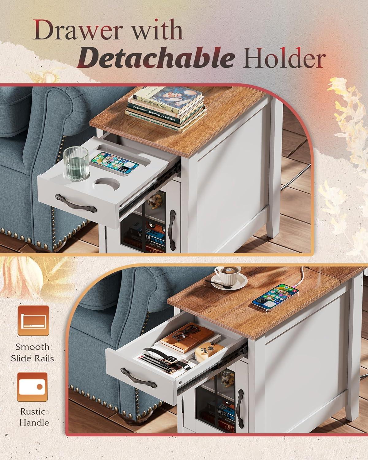 imageWLIVE End Table with Charging Station Narrow Side Table for Living Room Farmhouse Night Stand with Storage Small Wooden Cabinet Nightstand with USB Ports and Outlets 237quot D x 1378quot W x 237quot HWhite