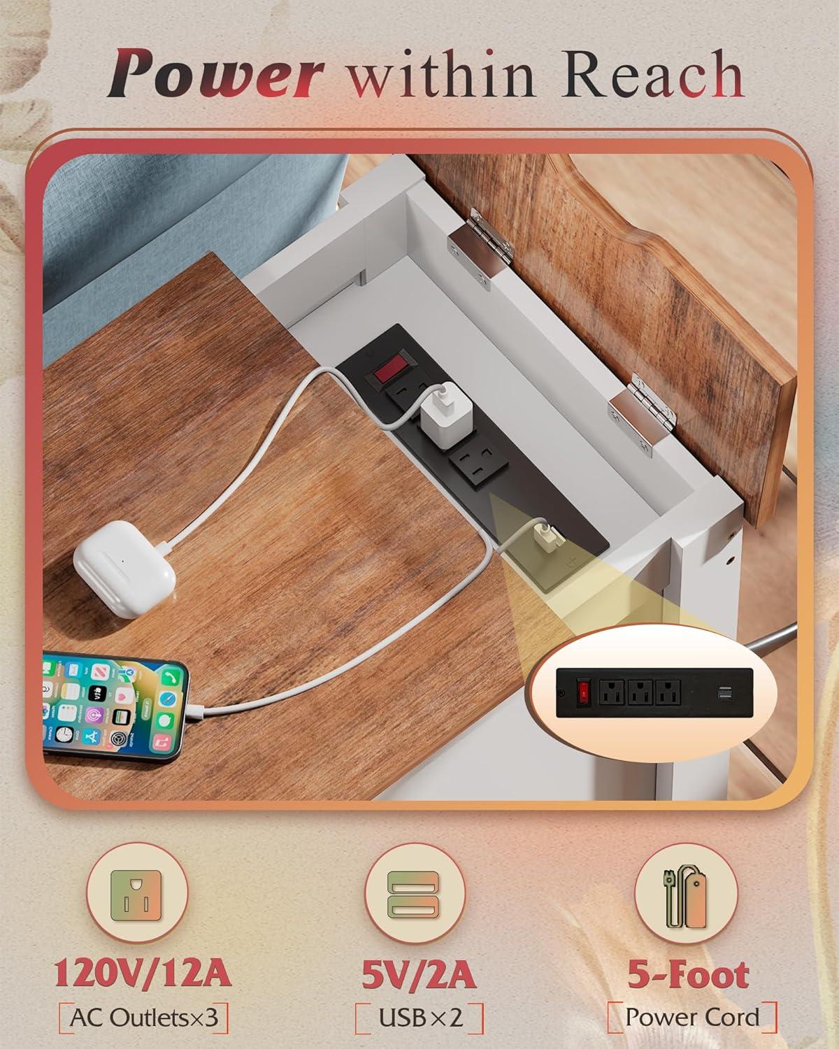 【Vintage Style】With its classic colors , Combine vintage and farmhouse, this side table with charging station blends perfectly into any decor and easily creates a stylish vibe in your home, it's the perfect way for adding personality and charm to your bedroom, living room and other small spaces.