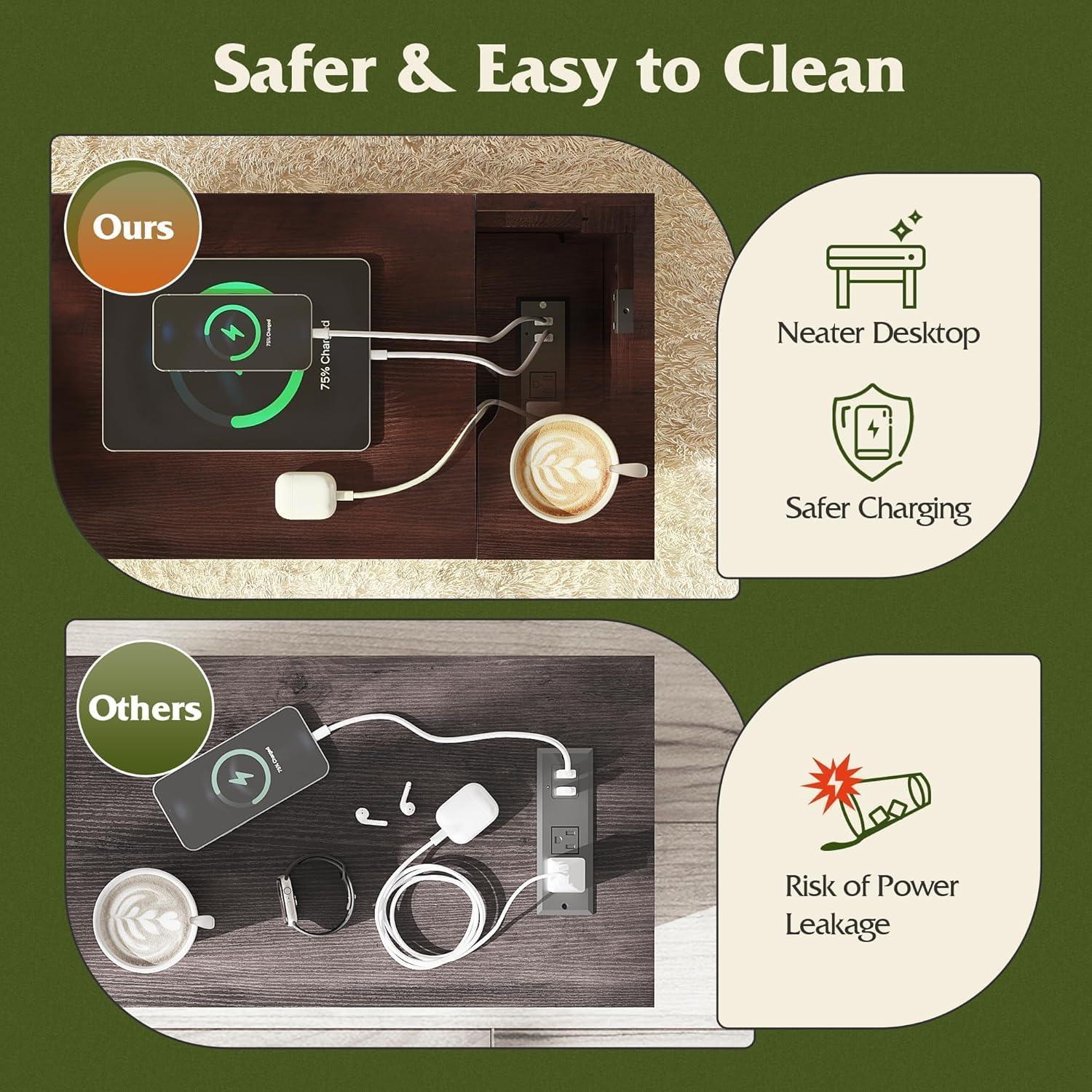 【Safe&Stable】The hidden flip-top cover and built-in plug increase daily safe. Yuo can put coffee and other drinks on top without worrying potential risks. The high quality raw material can also increase its stability, you can place this night stand between sofas, near beds and other small spaces in home.