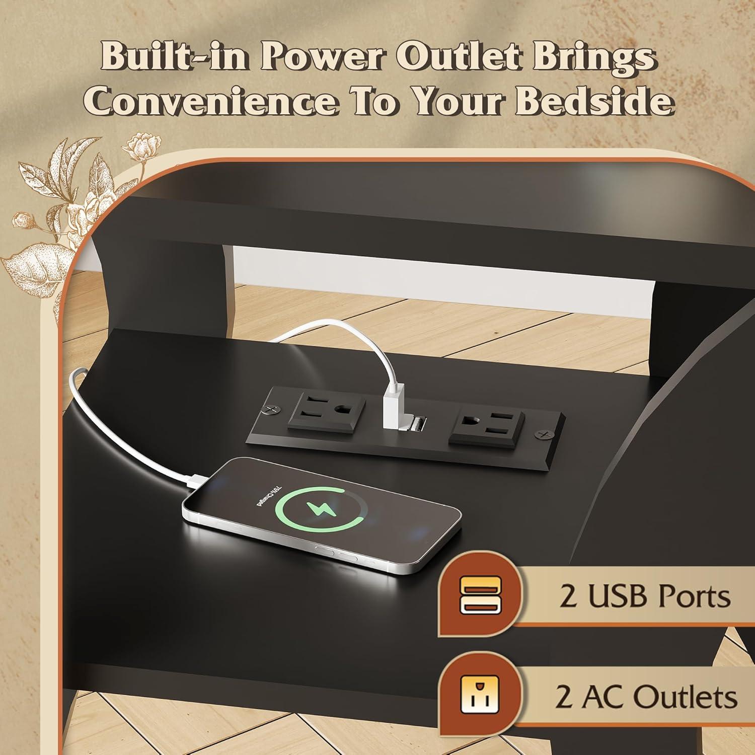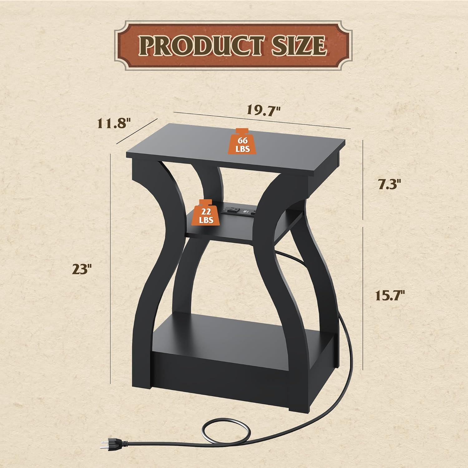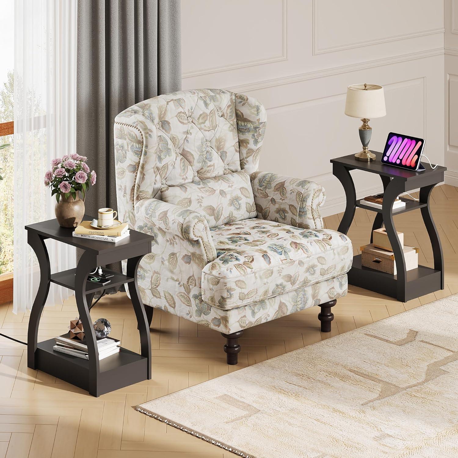 End Table with Charging Station Set of 2: WLIVE Side Table with Charging Station features 2 AC outlets, 2 USB ports, and a 5.9ft long power cord, allowing simultaneous charging of phones, iPads, laptops, and other electronic devices while tidying up messy cables in the bedroom or living room