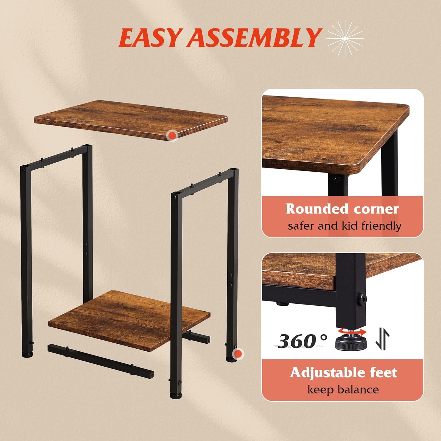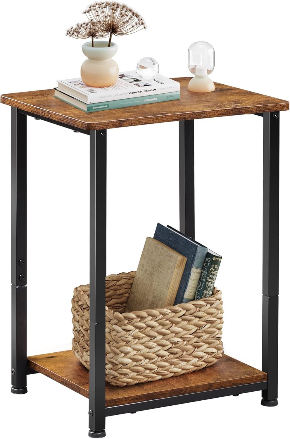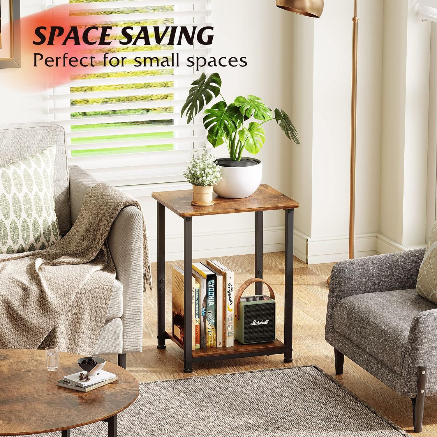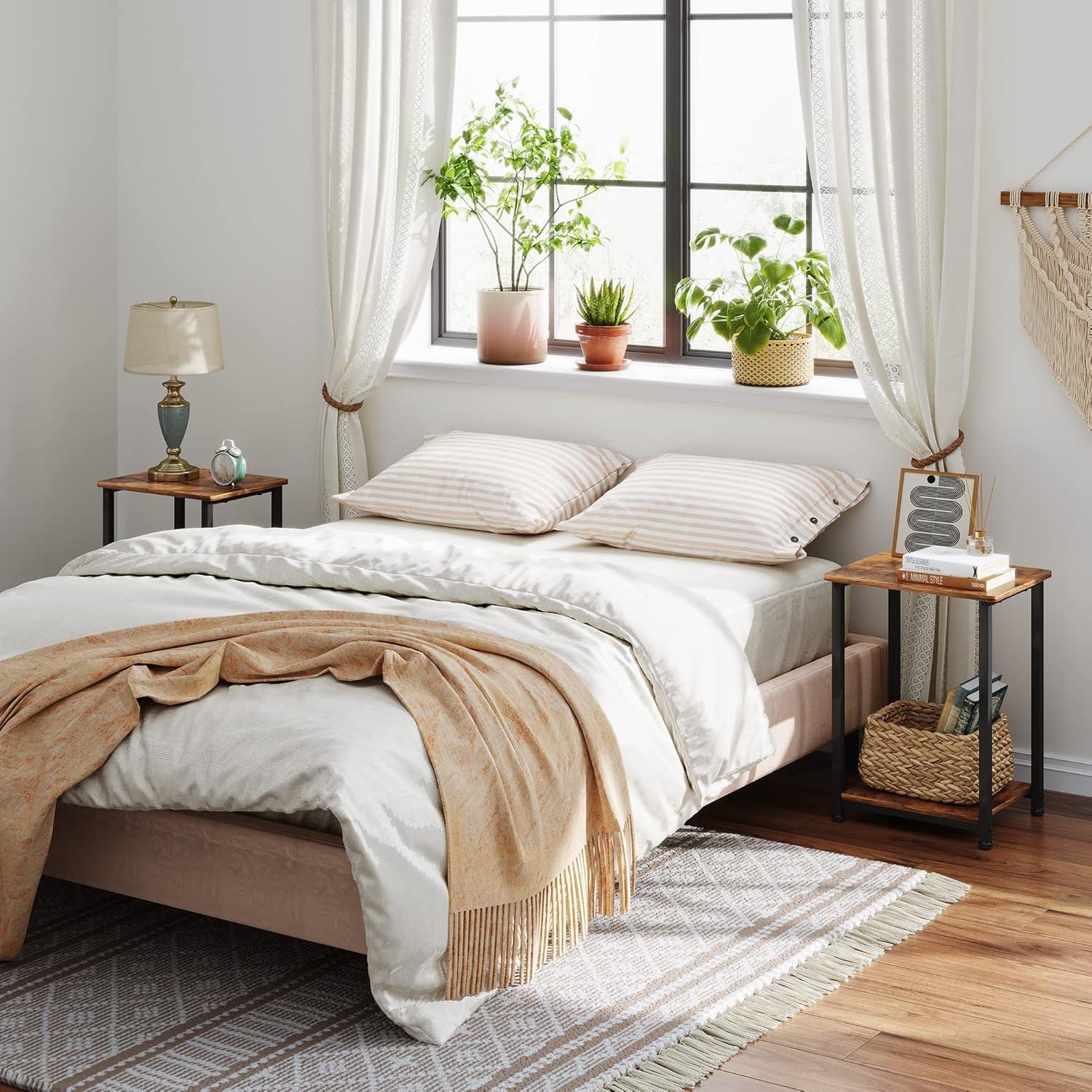 Simple style: The set of 2 side tables feature warm retro hues and matte black metal frame, perfect for integrating into any home decor. The clean and industrial design is always attracting.