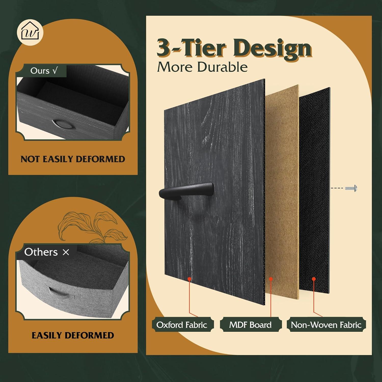 【Great Strong Construction】X-shaped frame on the back of the dresser improves stability; Water-resistant MDF wood top is sturdy and easy to clean; High quality fabric bins with easy pull handle are fade and stain-resistant,ensure a use period.