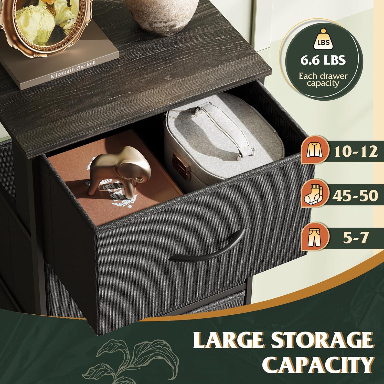 WLIVE Fabric Dresser, 5-Drawer Tall Dresser for Bedroom, Storage Organizer with Fabric Bins, Wood Top, Sturdy Steel Frame, Chest of Drawers for Closet, Hallway, Rustic Brown Wood Grain Print(Charcoal Black Wood Grain Print)