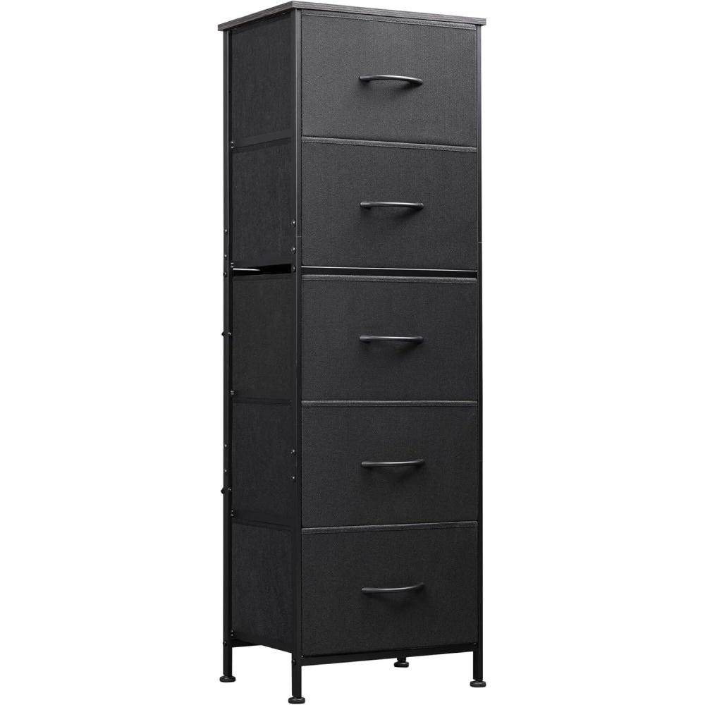imageWLIVE Fabric Dresser 5Drawer Tall Dresser for Bedroom Storage Organizer with Fabric Bins Wood Top Sturdy Steel Frame Chest of Drawers for Closet Hallway Rustic Brown Wood Grain PrintCharcoal Black