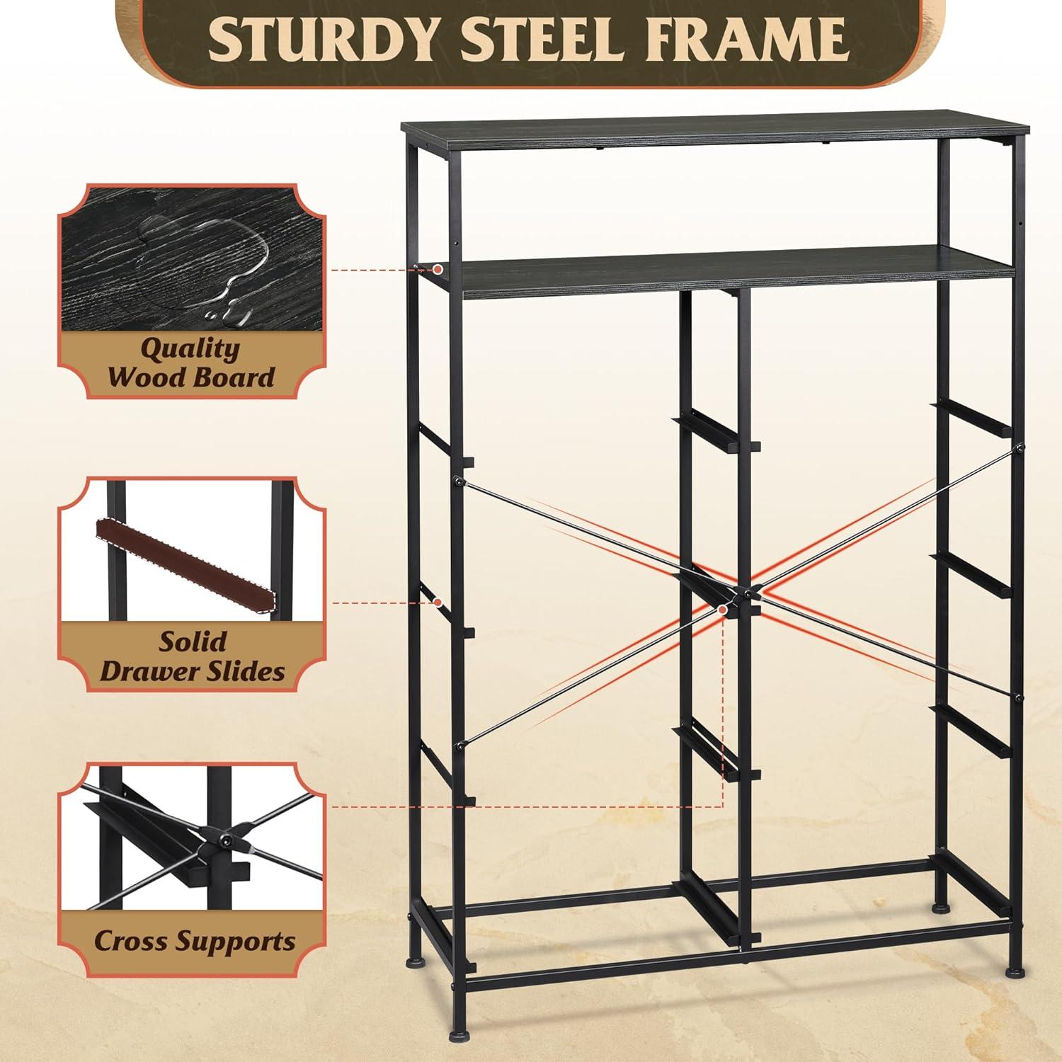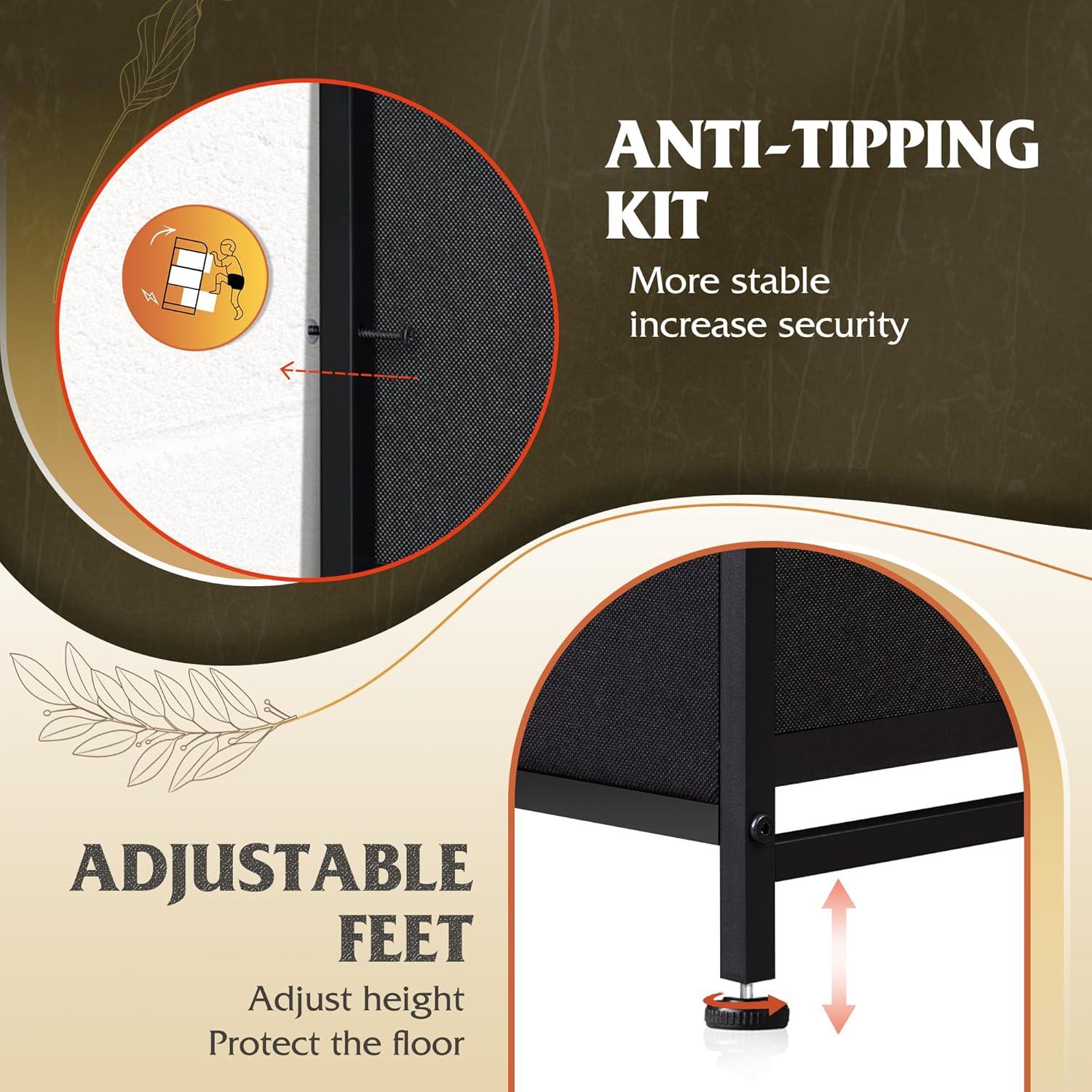 Sturdy and Durable: Strong steel frame, wooden top and high-grade non-woven fabric offer stable support and ensure years of use. The tall dresser has anti-tipping accessories to prevent incidents.