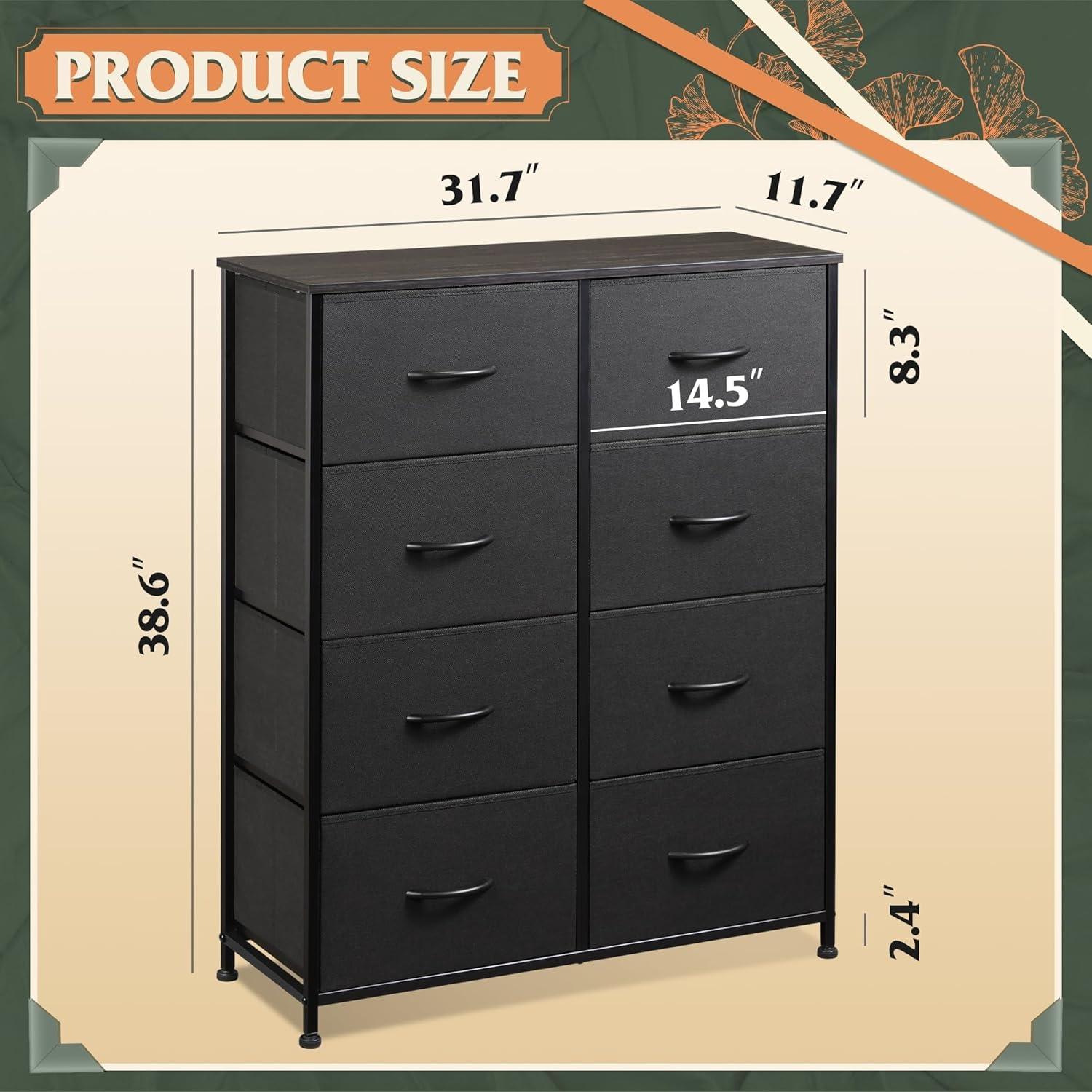 Overall Dimensions: The storage drawer unit measures 31.7″ L x 11.7″ W x 38.6″ H. The chest of drawers comes with detailed instructions and tools needed for installation; assembly video has been uploaded for your reference.