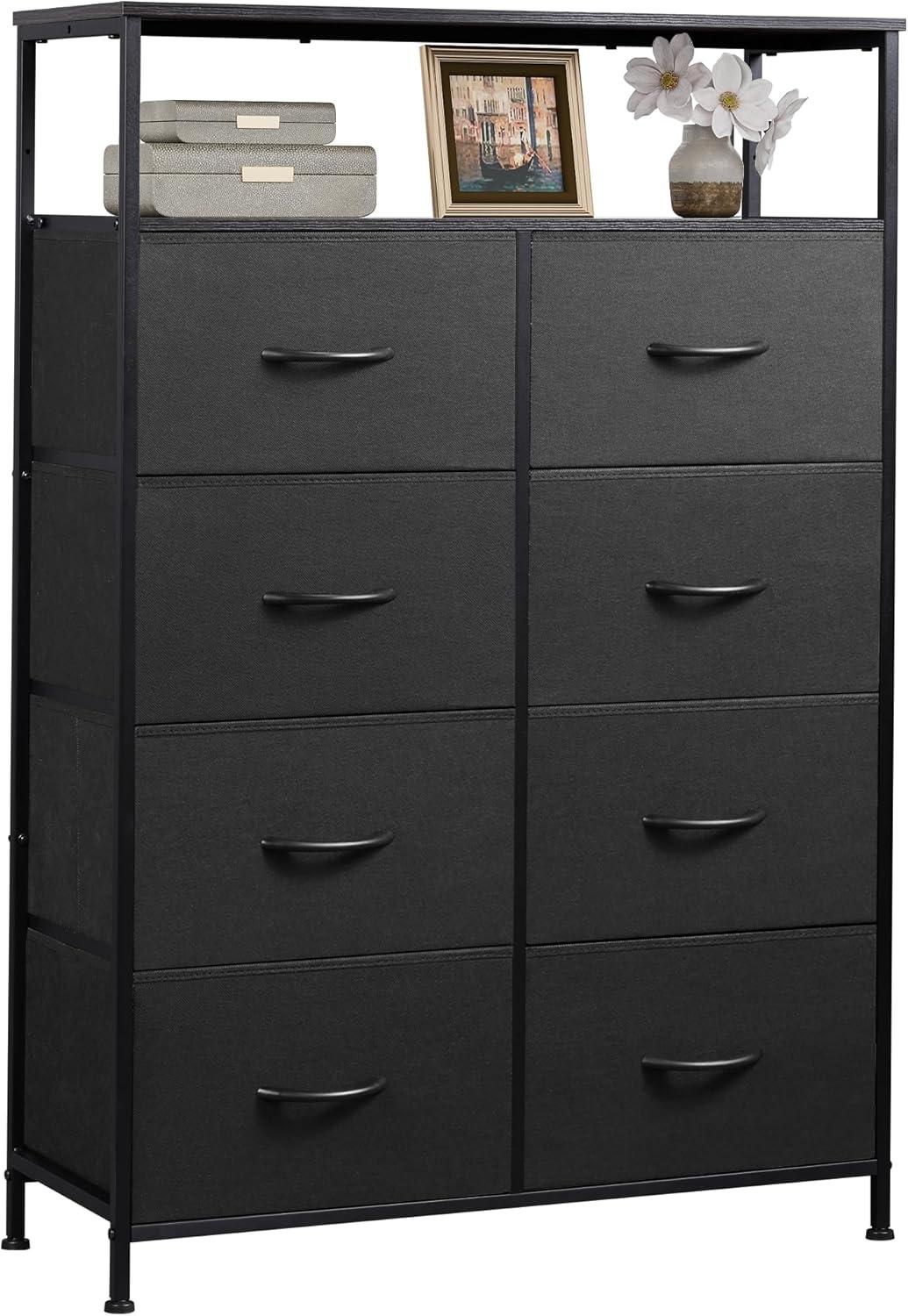 WLIVE Fabric Dresser for Bedroom, Tall Dresser with 8 Drawers, Storage Tower with Fabric Bins, Double Dresser, Chest of Drawers for Closet, Playroom, Dormitory, Light Grey(Charcoal Black)
