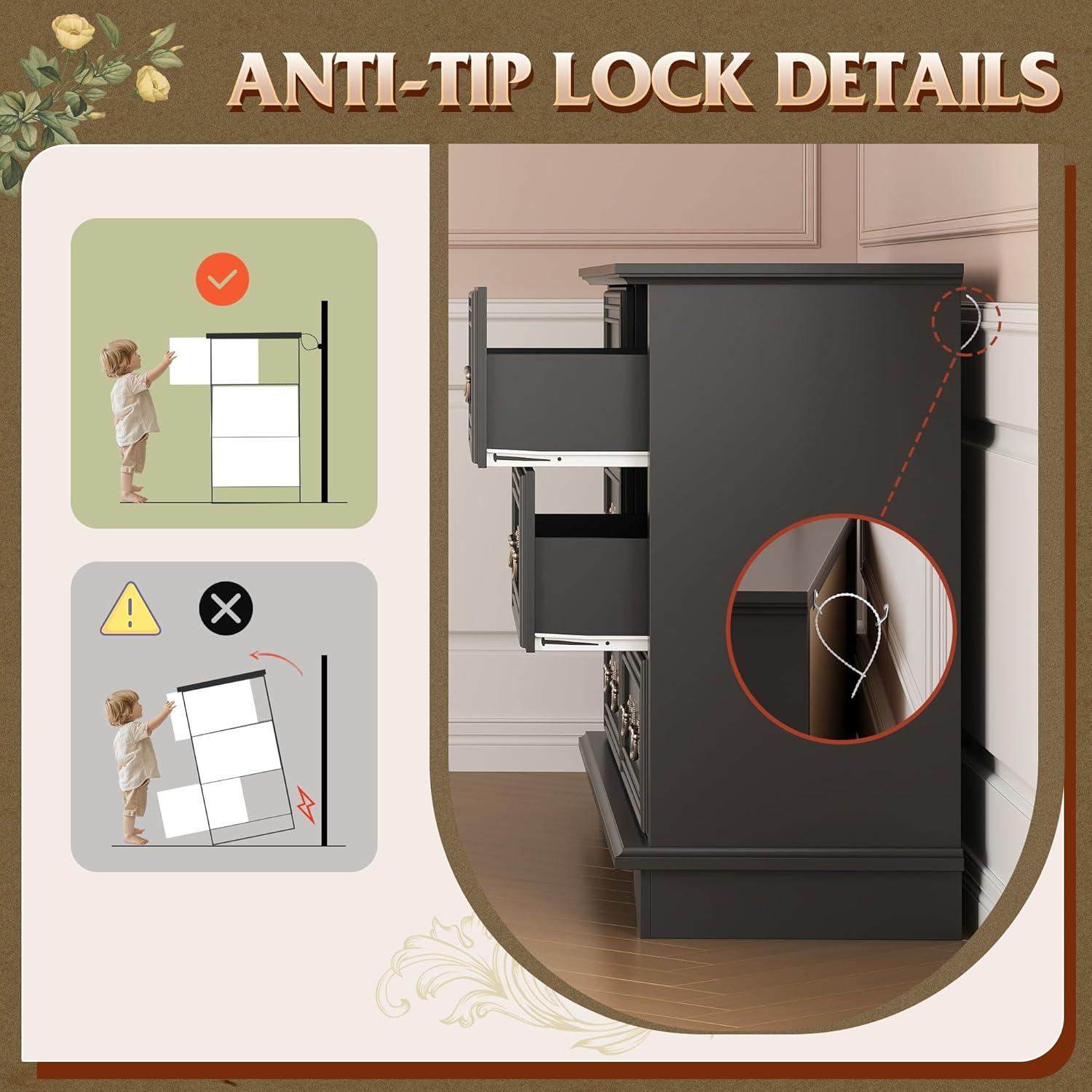 【Safe and Sturdy】The dressers & chests of drawers are made of durable engineered wood, featuring a thick tabletop that can support heavy items. Sloping edges and widened legs improve stability. An anti-tipping device ensures child safety by preventing wobbling and tipping.
