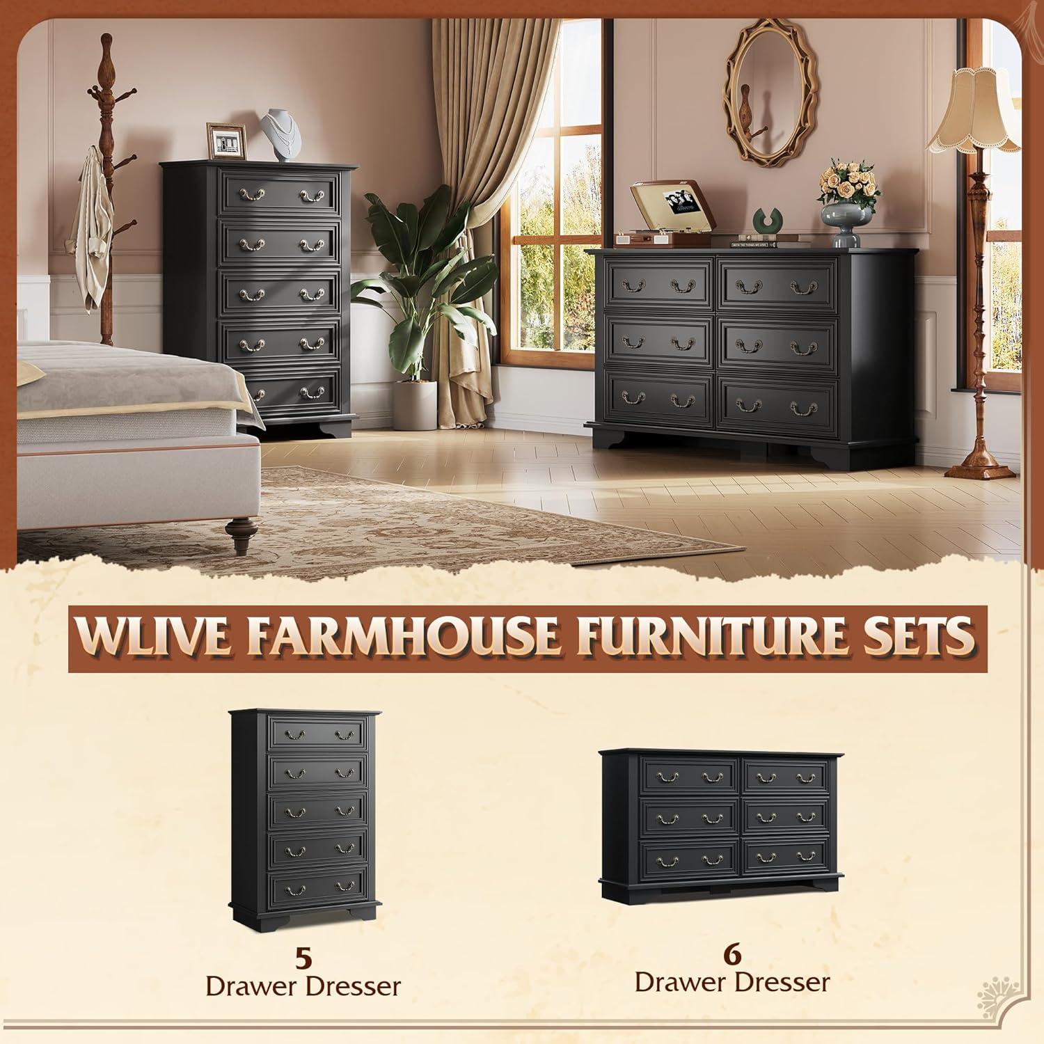 WLIVE Farmhouse 5 Drawer Dresser for Bedroom, Tall Wood Chest of Drawers