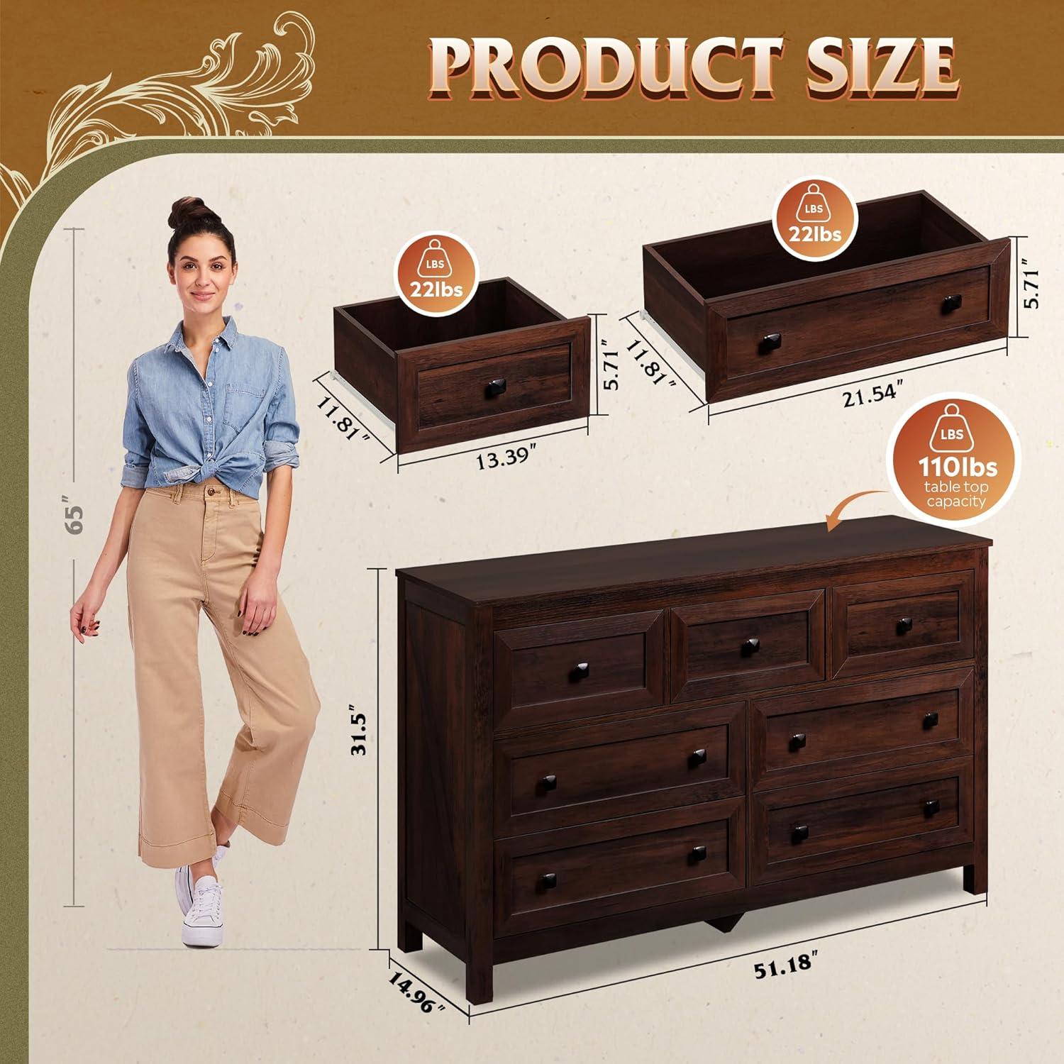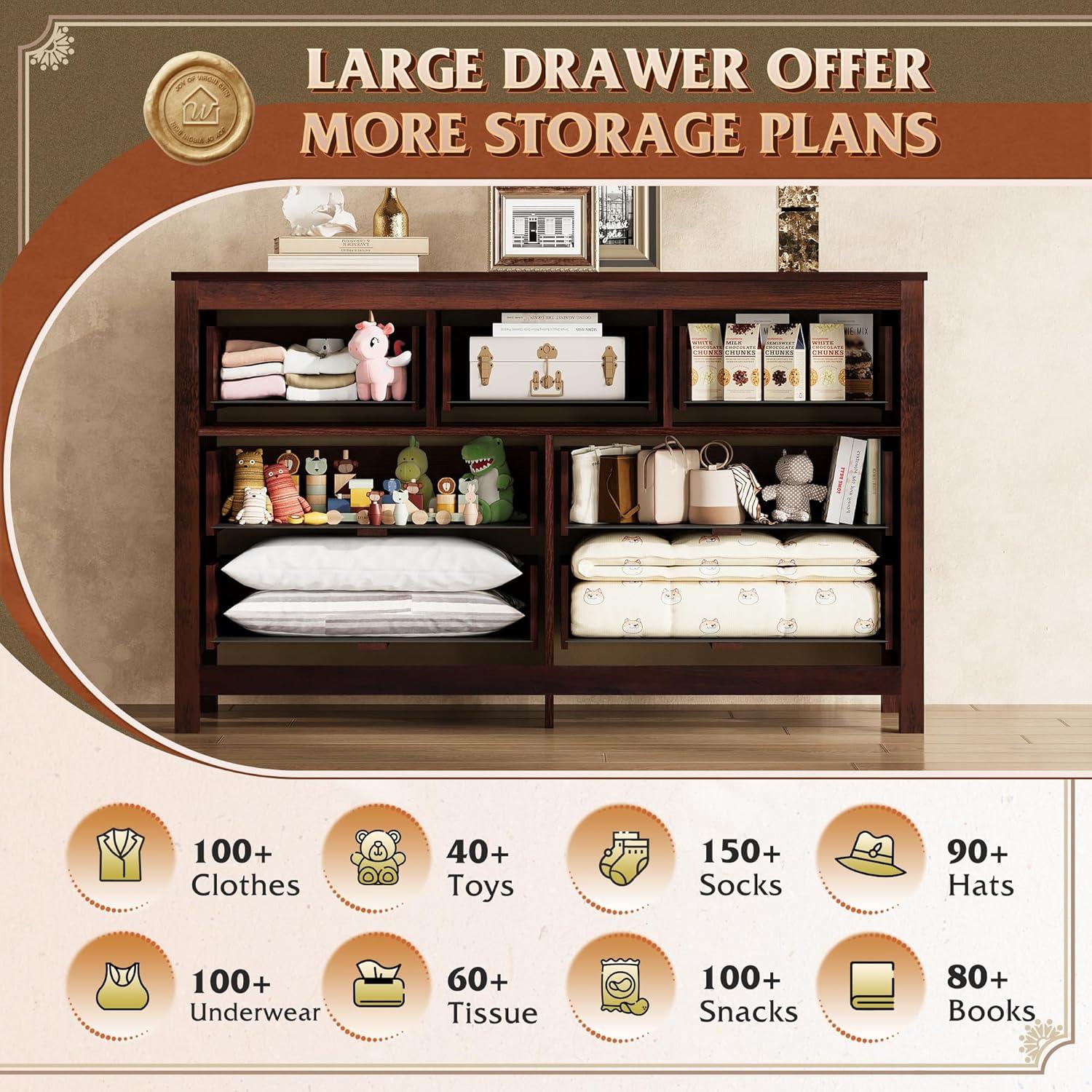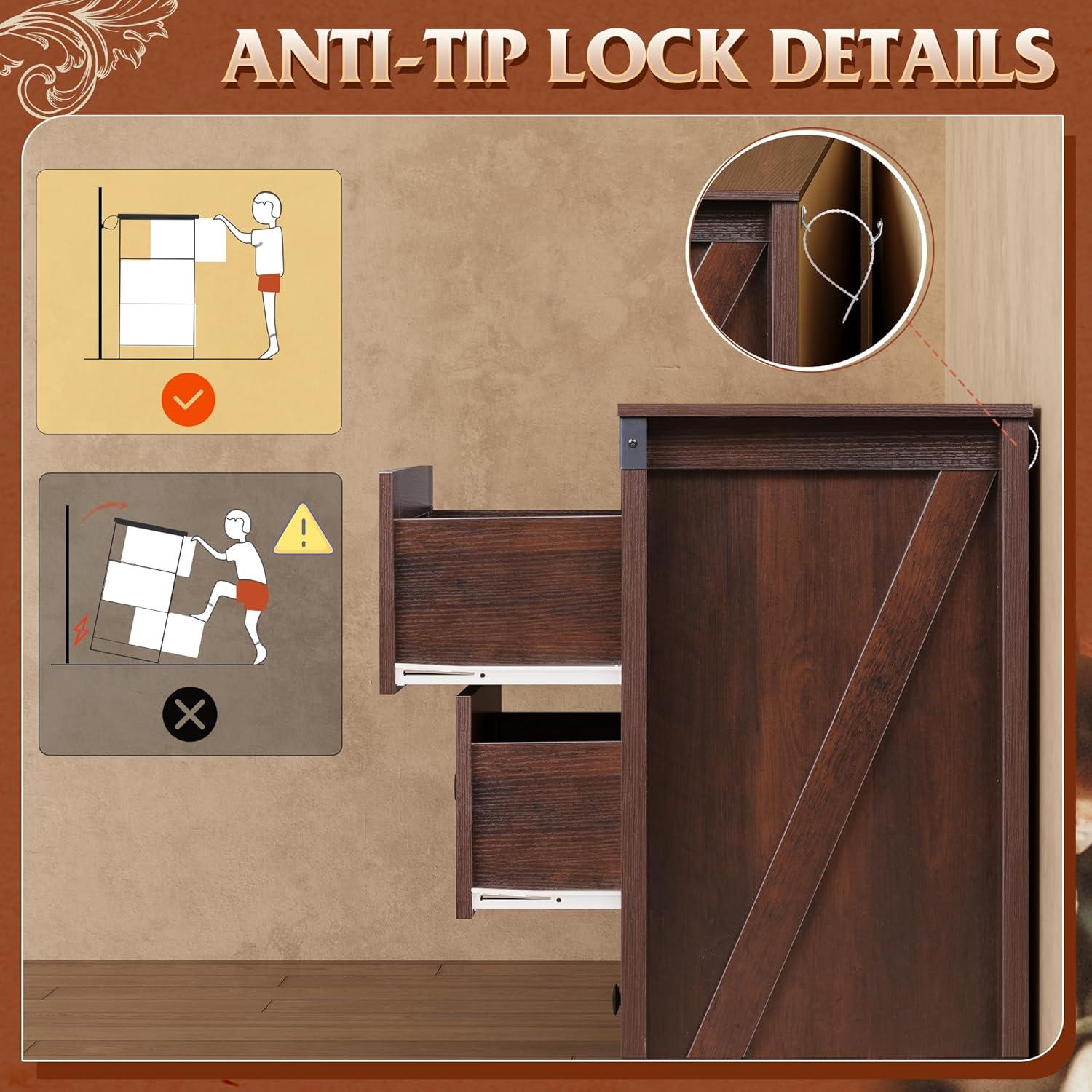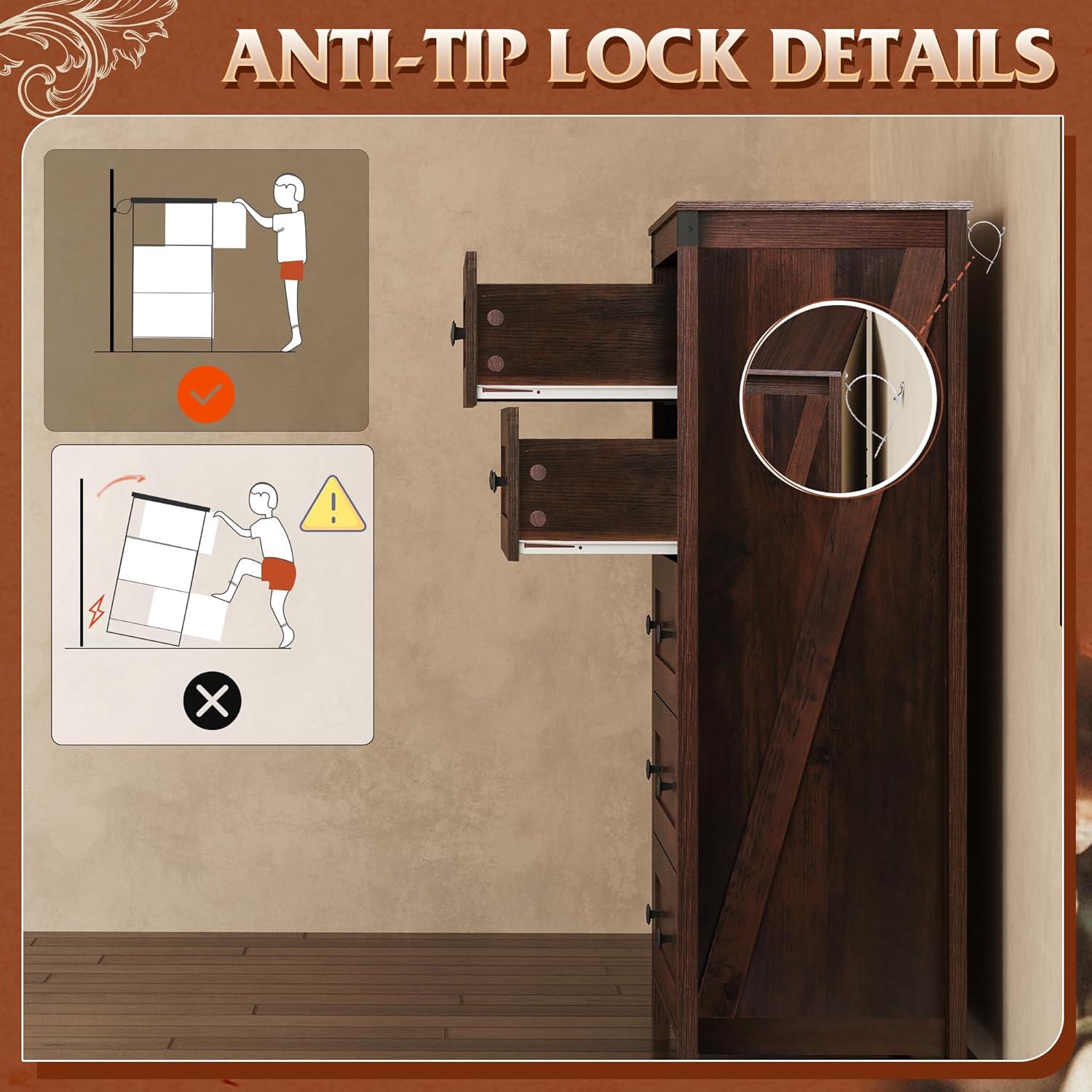 SAFE AND STURDY: The dressers & chests of drawers are made of durable engineered wood, featuring a thick tabletop that can support heavy items. The arched table legs design enhances the stability and durability of the storage cabinet. An anti-tipping device ensures the safety of your family members by preventing wobbling and tipping.