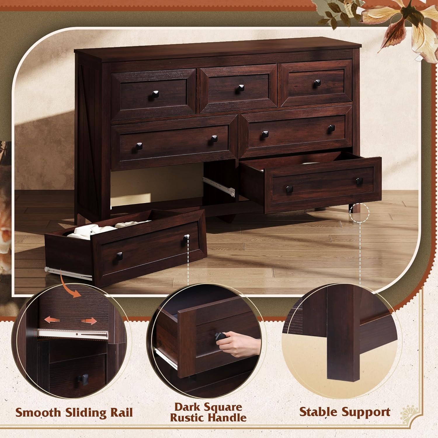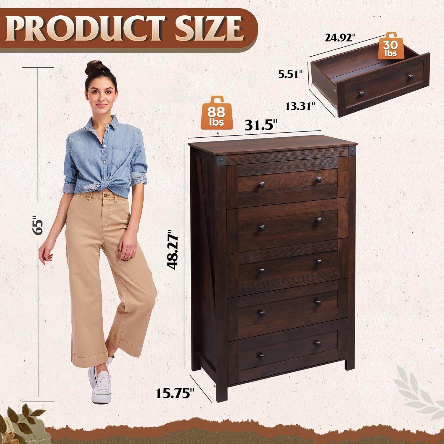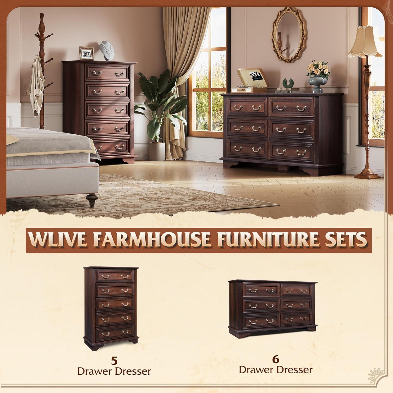 imageWLIVE Farmhouse Dresser for Bedroom Black Wood Storge Cabinet with 4 Drawers for Living Room Hallway Closet Tall Retro Nightstand with Roman Metal HandleBrown
