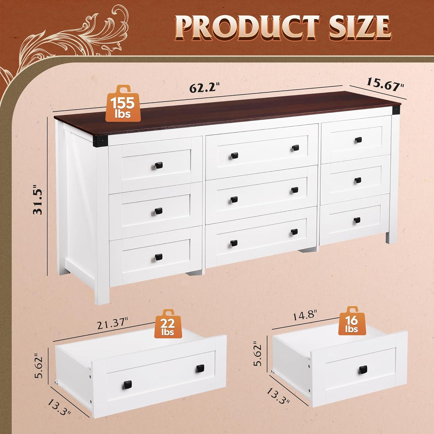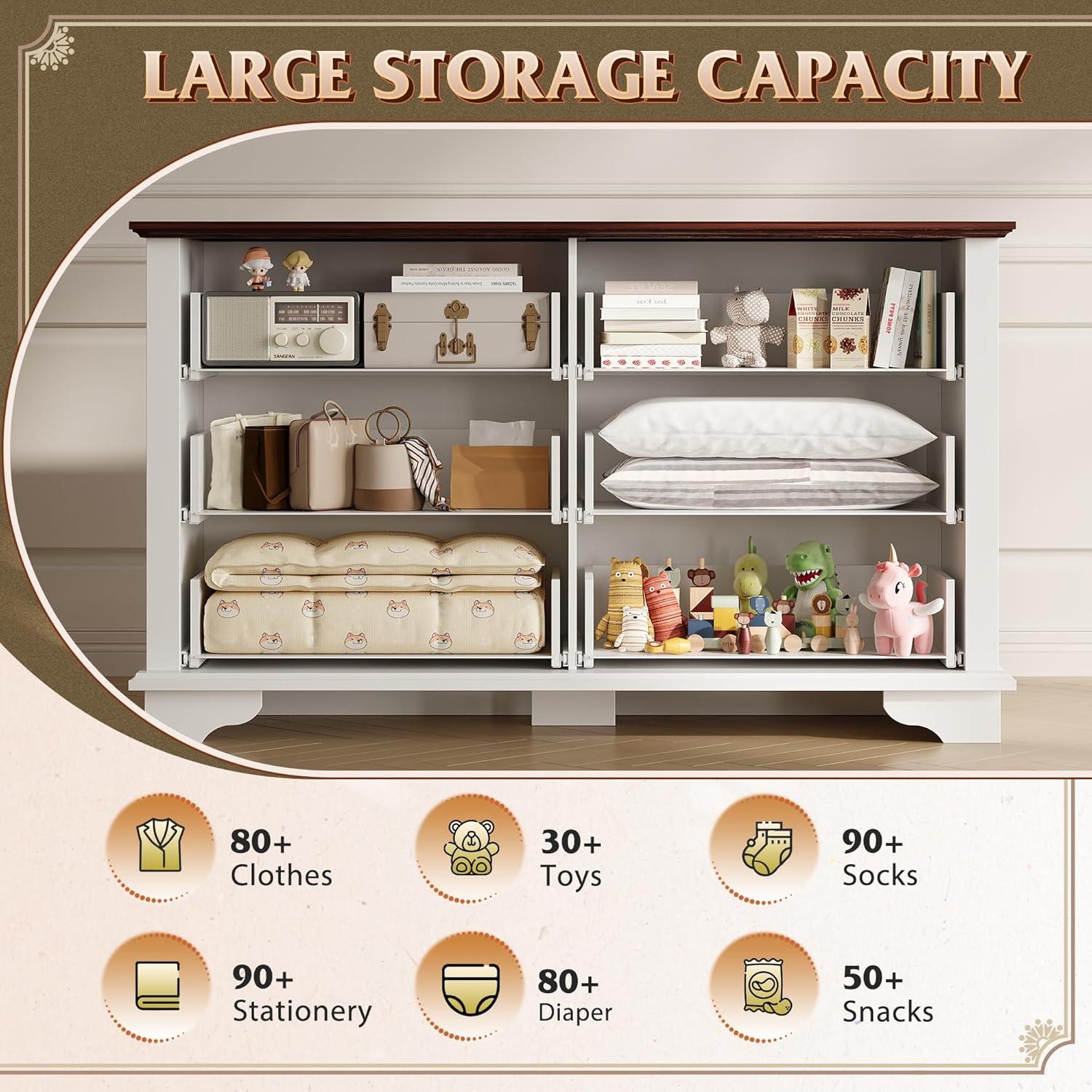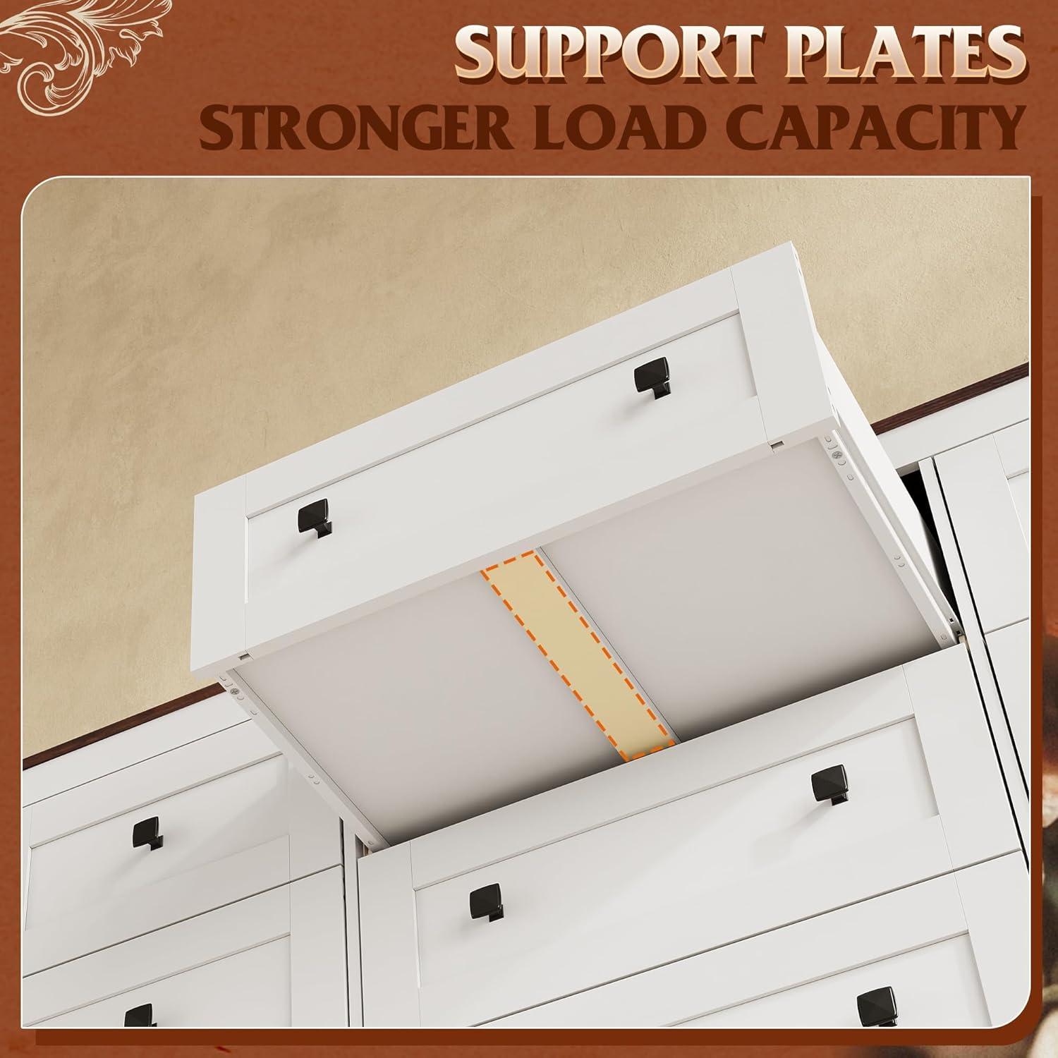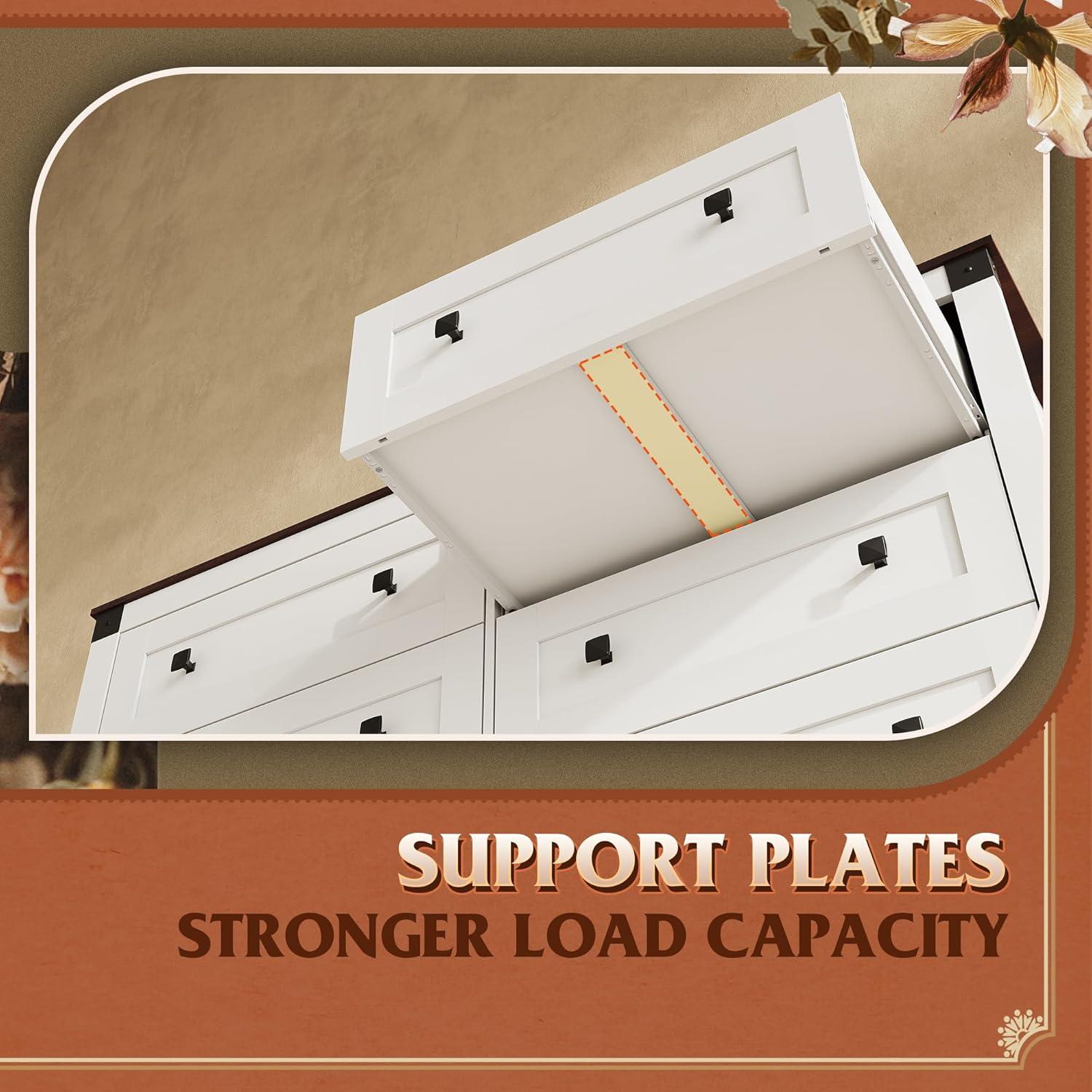 SAFE AND STURDY: The dressers & chests of drawers are made of durable engineered wood, featuring a thick tabletop that can support heavy items. The arched table legs design enhances the stability and durability of the storage cabinet. An anti-tipping device ensures the safety of your family members by preventing wobbling and tipping.