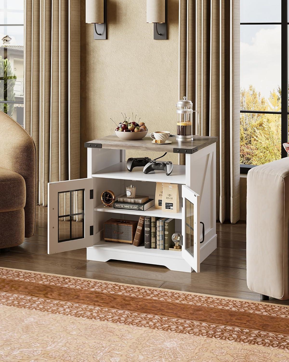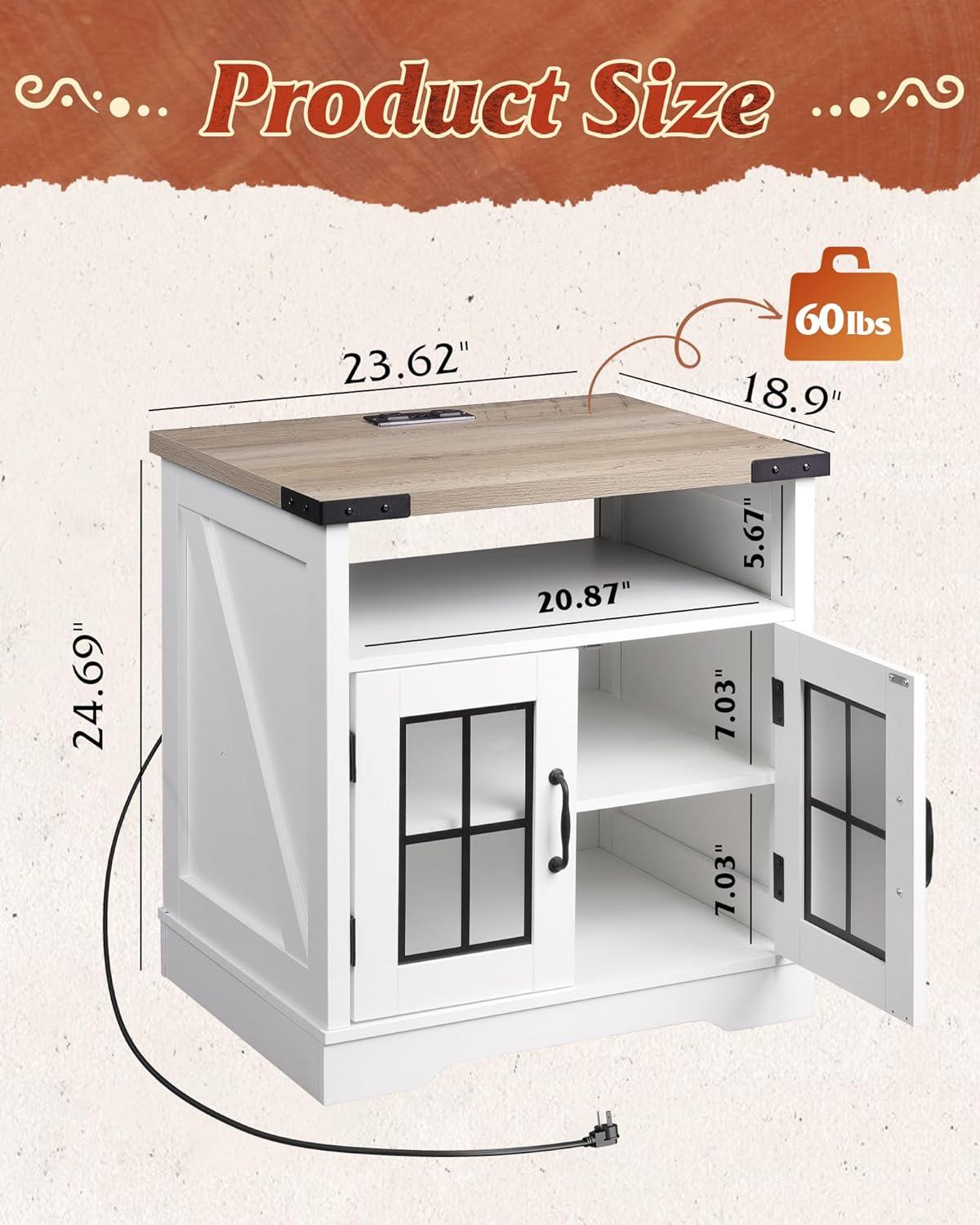 【Sturdy & Durable Design】This end table with storage ,made from high-quality materials, this farmhouse nightstand supports up to 60 lbs. Solid wood legs ensure stability, while metal accents protect against scratches. Ideal as a side table for living room, bedroom, or office.