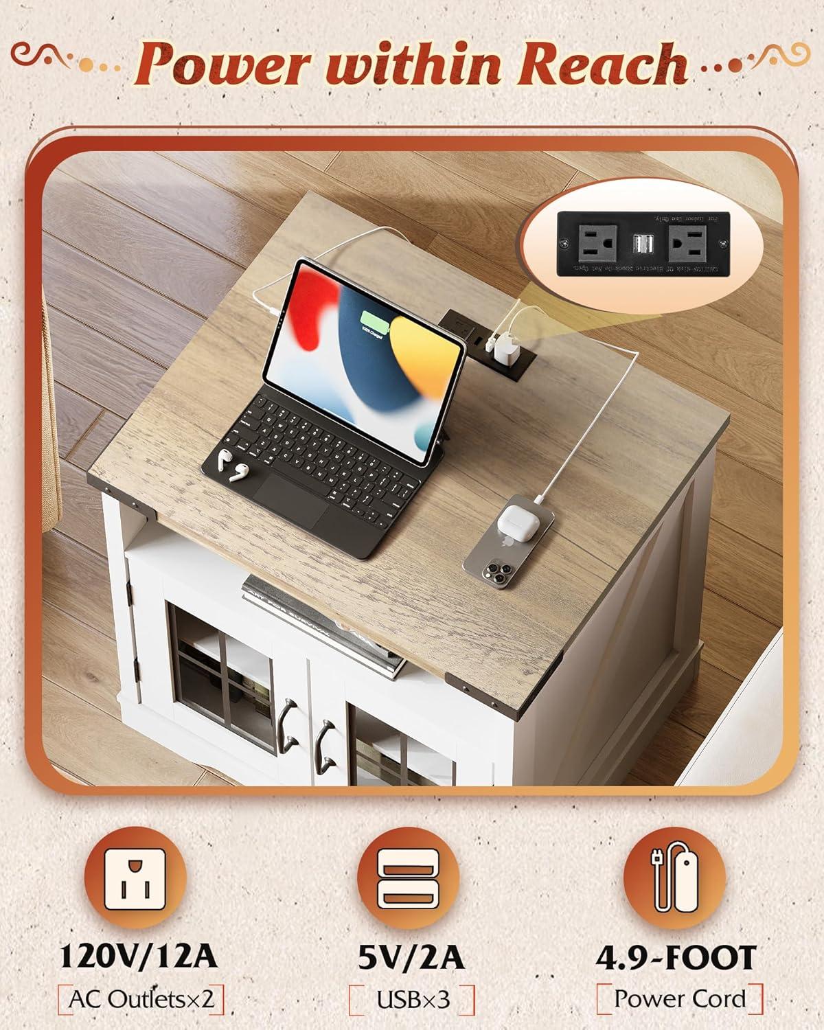 【Side Table with Charging Station】This farmhouse end table comes with 3 USB ports and 2 AC outlets. It allows you to charge multiple electronic devices at the same time. Plus, it includes a dedicated connection for LED light strips, making it perfect for both work and relaxation right at living room.