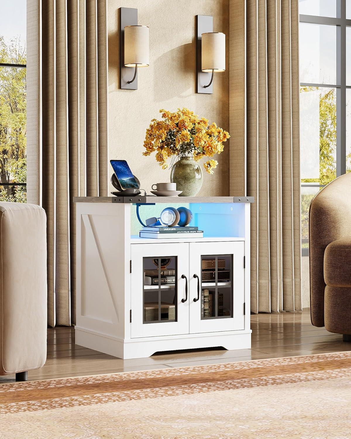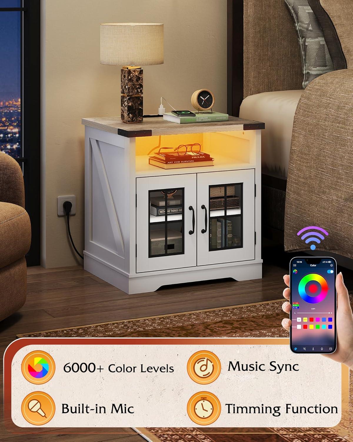 【Farmhouse End Table with LED Lights】This farmhouse side table includes an LED light strip controlled via a mobile app. Adjust colors and brightness to enhance your living room, gaming room or bedroom atmosphere, perfect for a calming sleep environment.