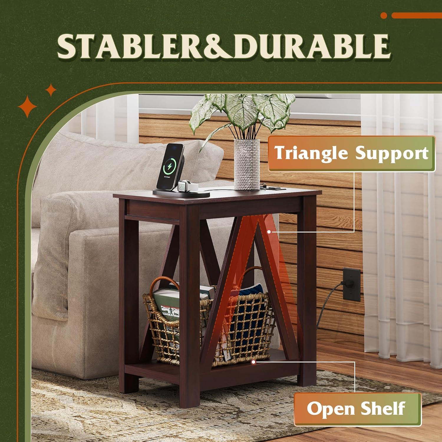 【Sturdy Structure and Intimate Design】The thick wood board and A-frame ensure stability and durability for years of use. Each leg of the side table is equipped with anti-slip pads, which will not scratch the floor. The weight capacity of the top is about 55 lbs, and the shelf is up to 44 lbs. This side table provides you with peace of mind