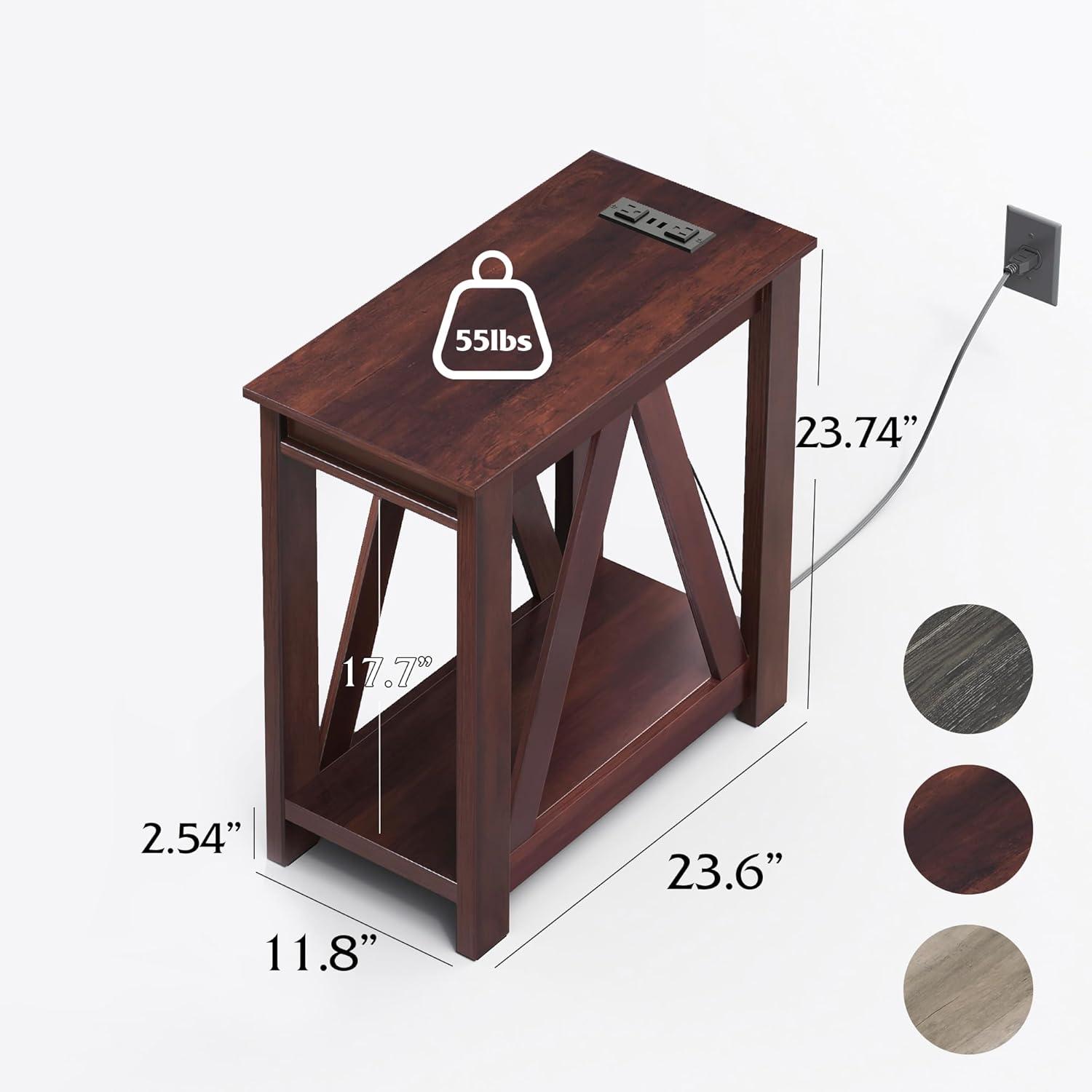 WLIVE Farmhouse End Table, Narrow Side Table with Charging Station, Slim End Table, Side Table for Bedroom, Living Room, Small Spaces, with 2 USB and 2 Power Outlets, 11.8" D x 23.6" W x 23.74" H(Espresso)