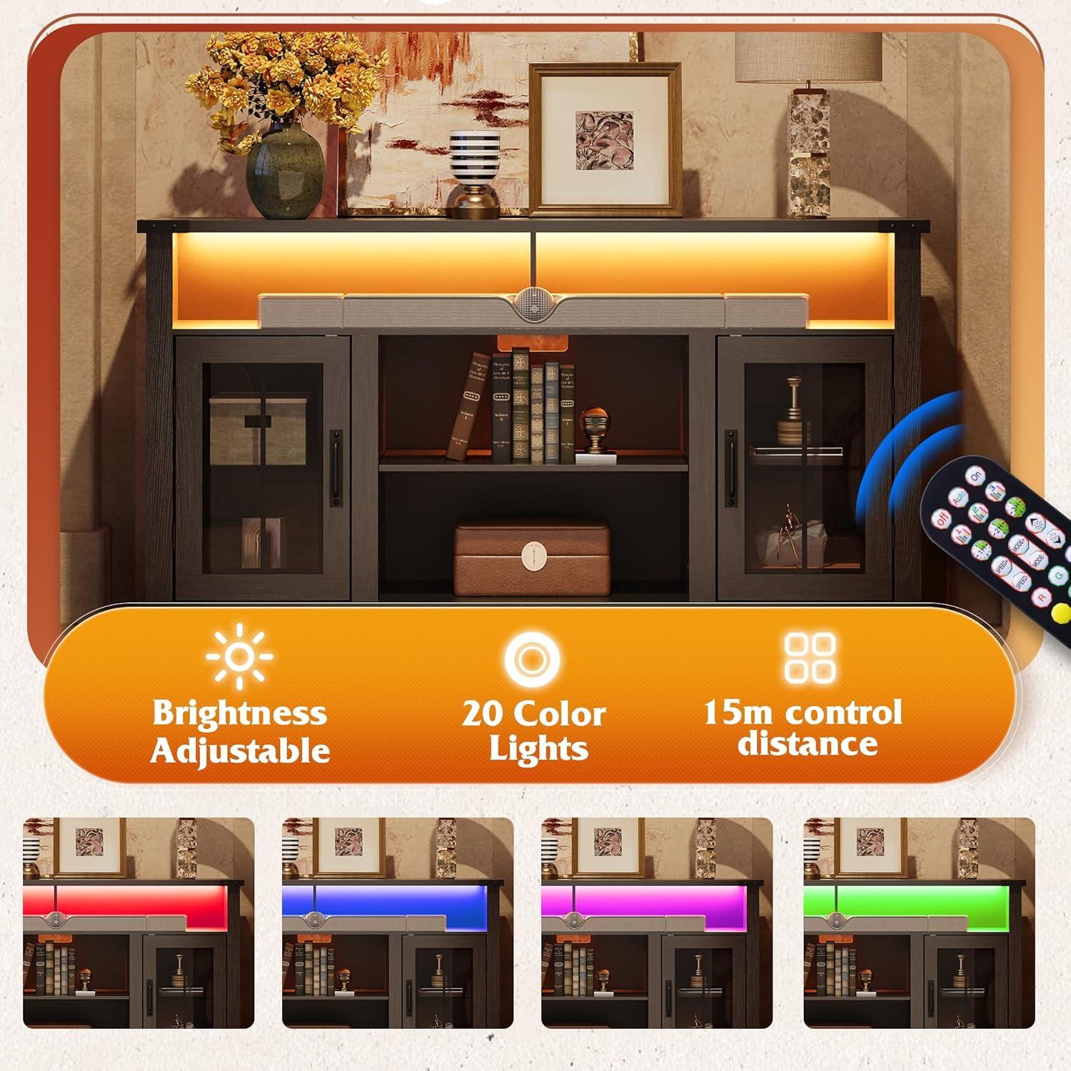 imageWLIVE Farmhouse TV Stand for 65 Inch TV Tall Entertainment Center with LED Lights amp Storage Cabinets TV Media Console Table with Adjustable Shelf for Living Room Bedroom Home Theater BlackBlack Ebony