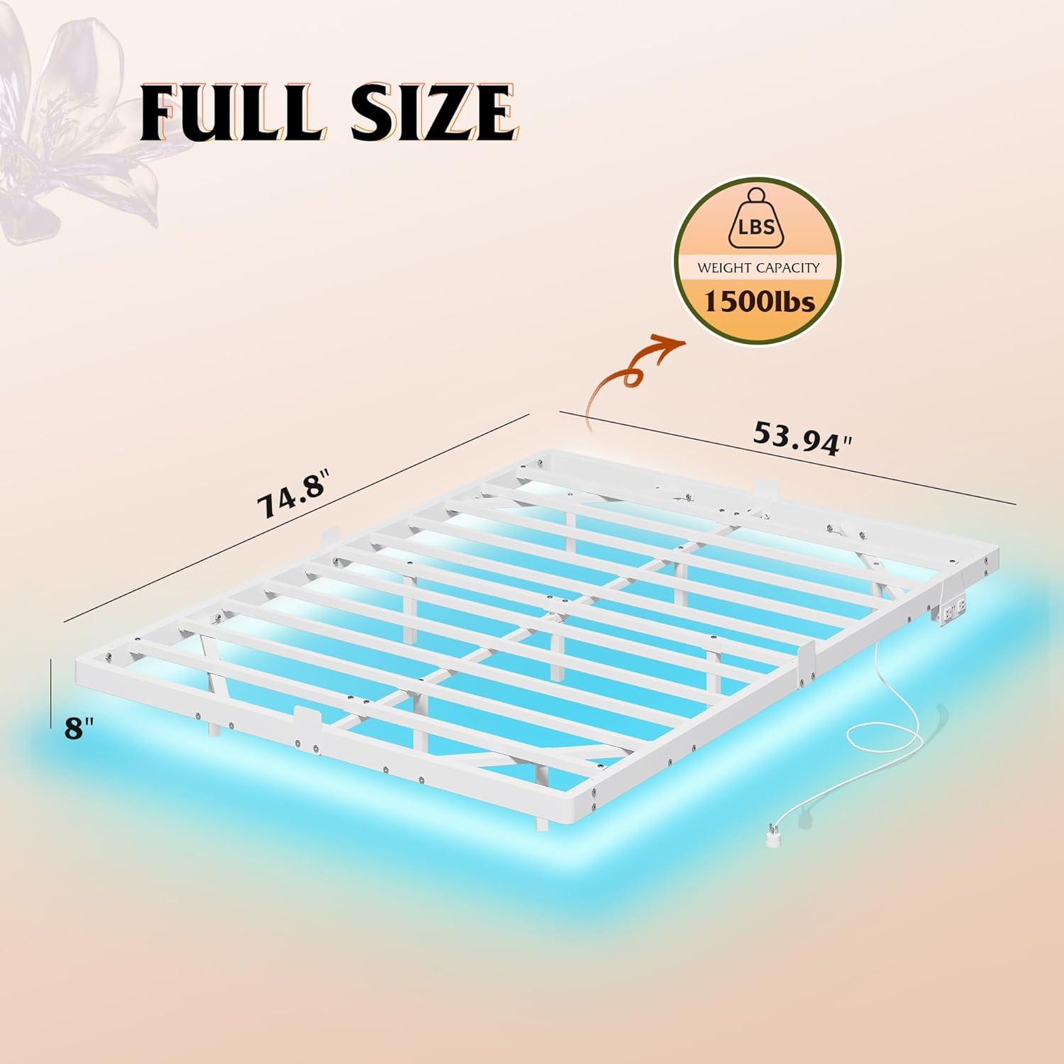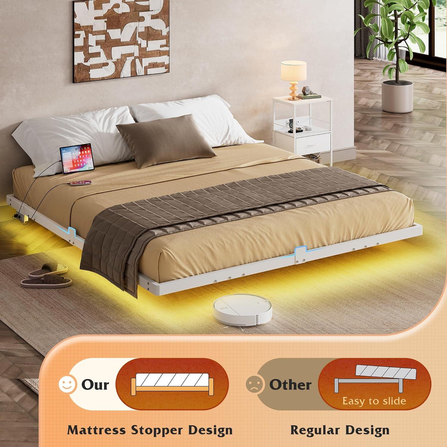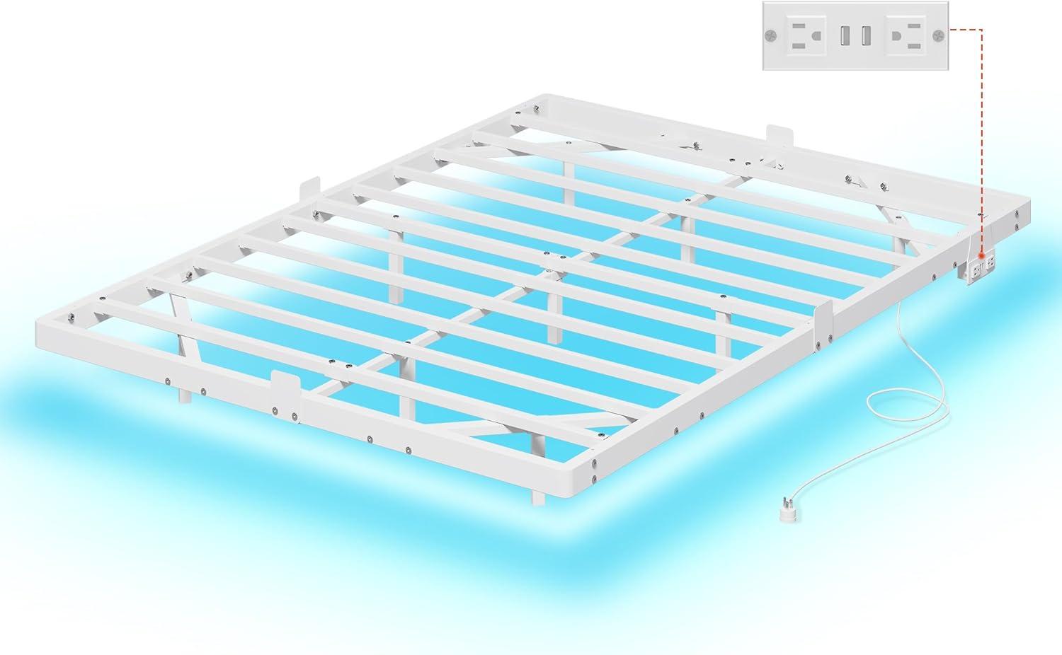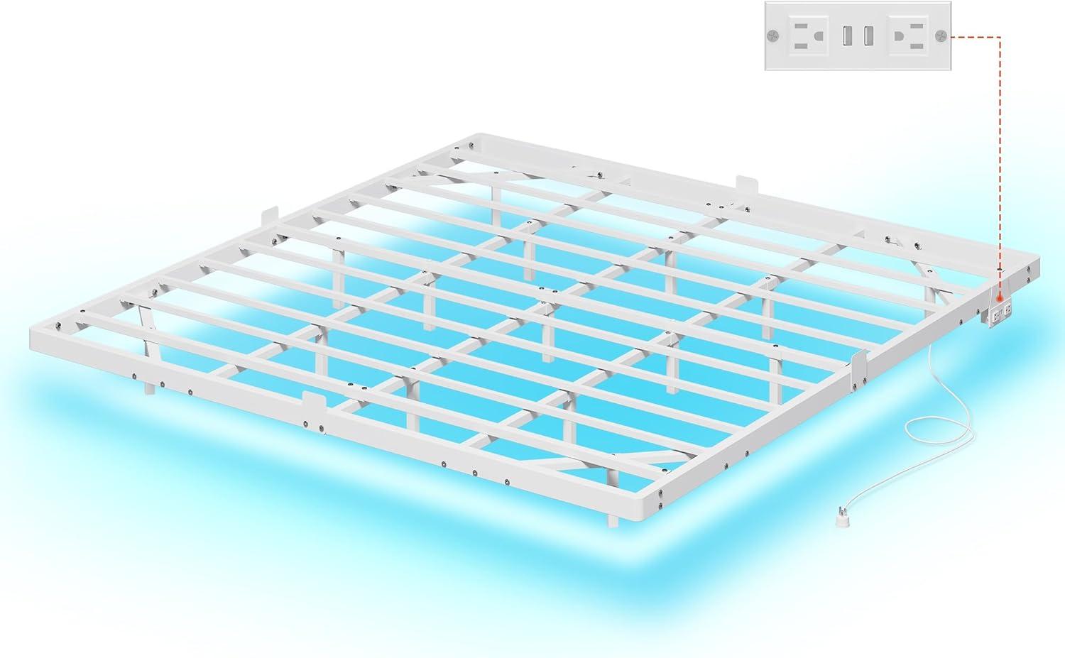 WLIVE Floating Queen Bed Frame, LED Bed Frame with Charging Station, Metal Platform Beds Queen Size with Heavy Duty Steel Slats, No Box Spring Needed, Easy Assembly, No Noise, Black(White)