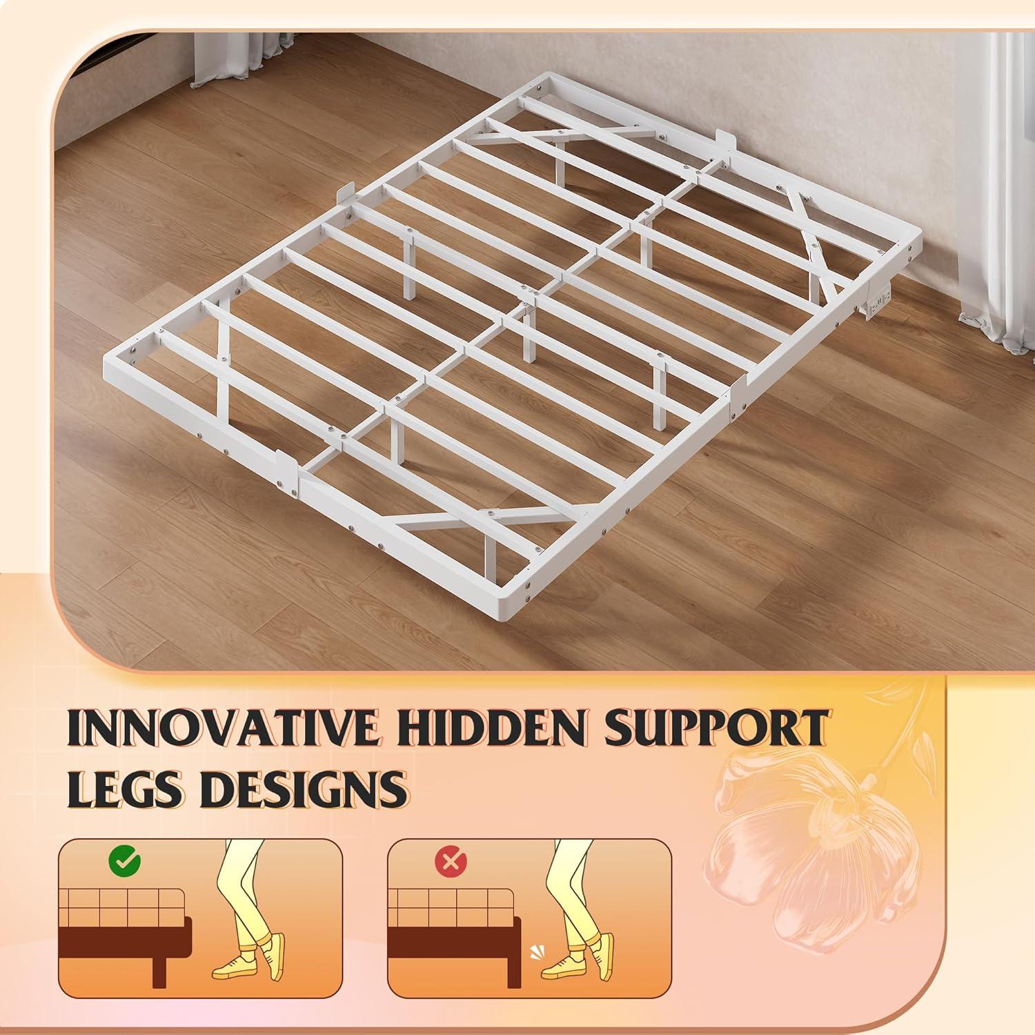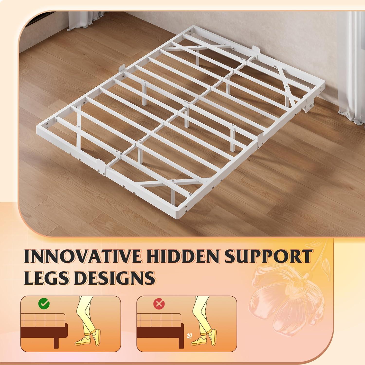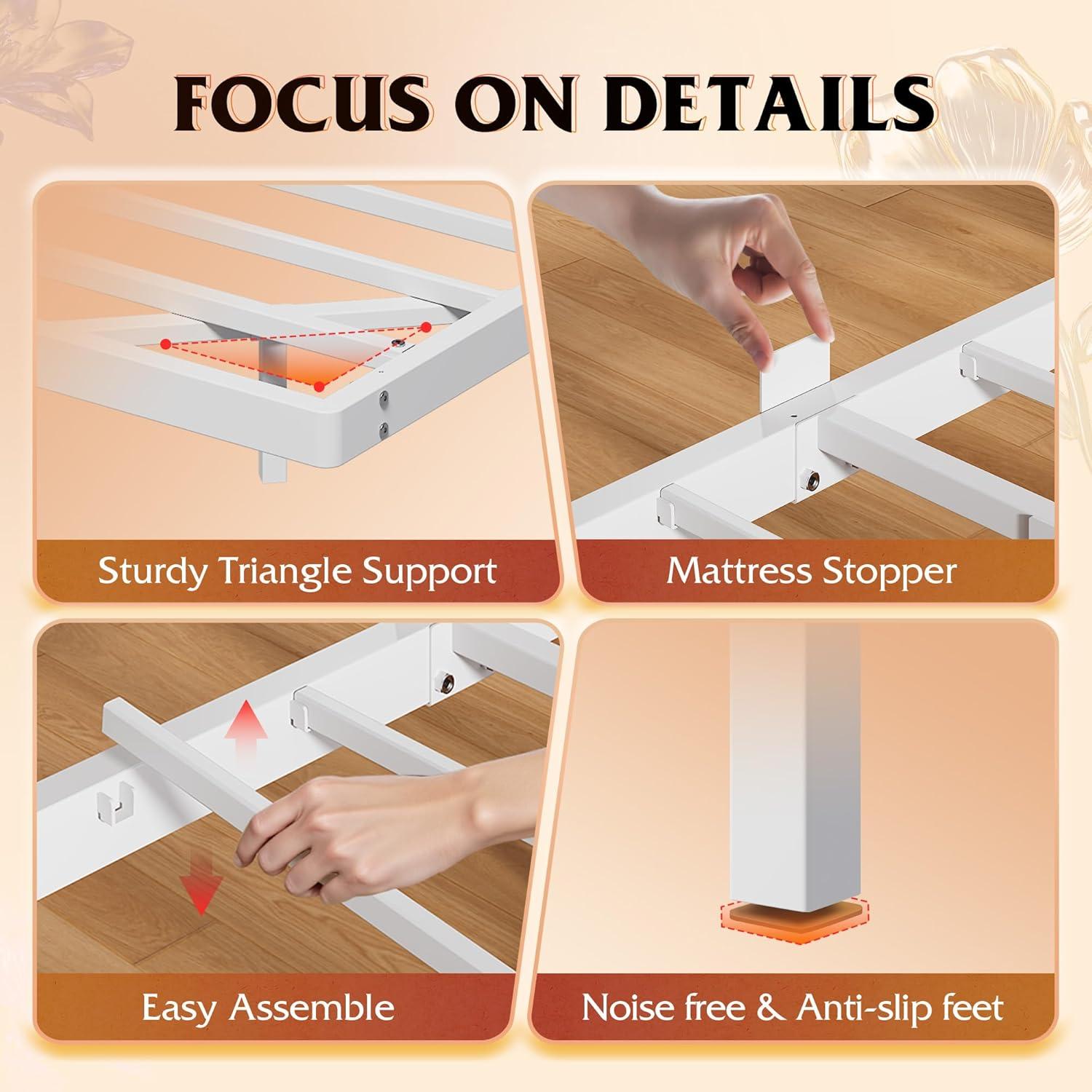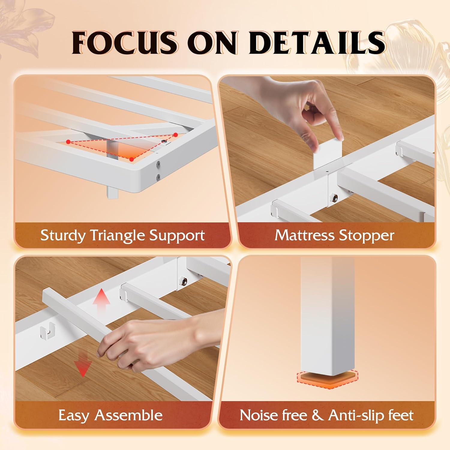【✨ Durable Quality Material】This floor bed is made of high-quality metal slats and adjustable steel legs. The 4 corners are reinforced with triangular tension rods, providing a load-bearing capacity of up to 1500 pounds. Even a family of three with a pet can sleep on it without any problem. The bed legs are equipped with a dual protection component of anti-wear tube plugs and 3M anti-slip pads, prevent the beds from sliding while providing an invisible protective armor for the floor!