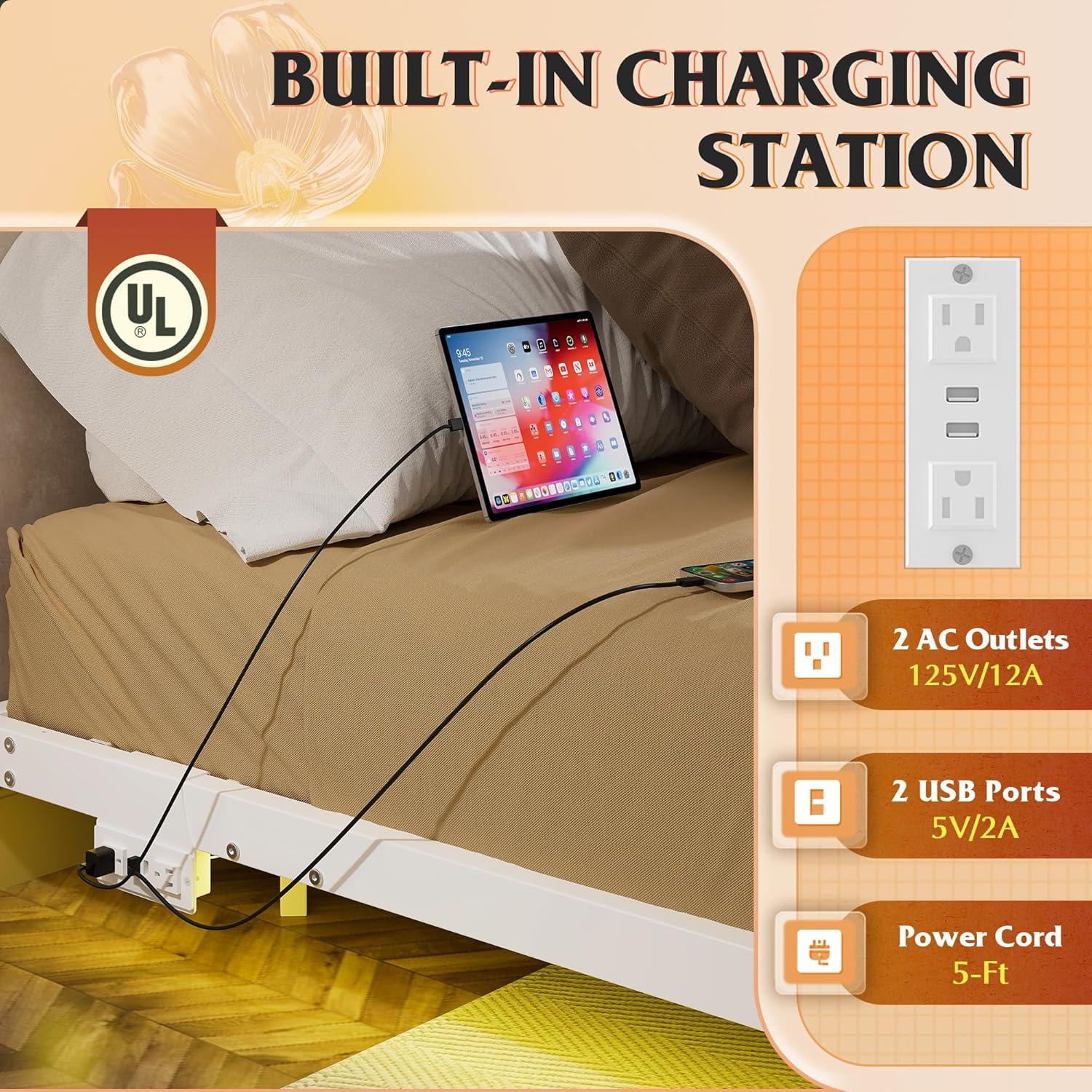 【✨ Powered Bed Frames】Say goodbye to messy wires! Metal Platform Bed Frame is equipped with 2 AC sockets +2 USB ports, 1.5m flexible cable length, Mobile phones, tablets, game consoles can be done, through UL/ETL certification, electricity safety!