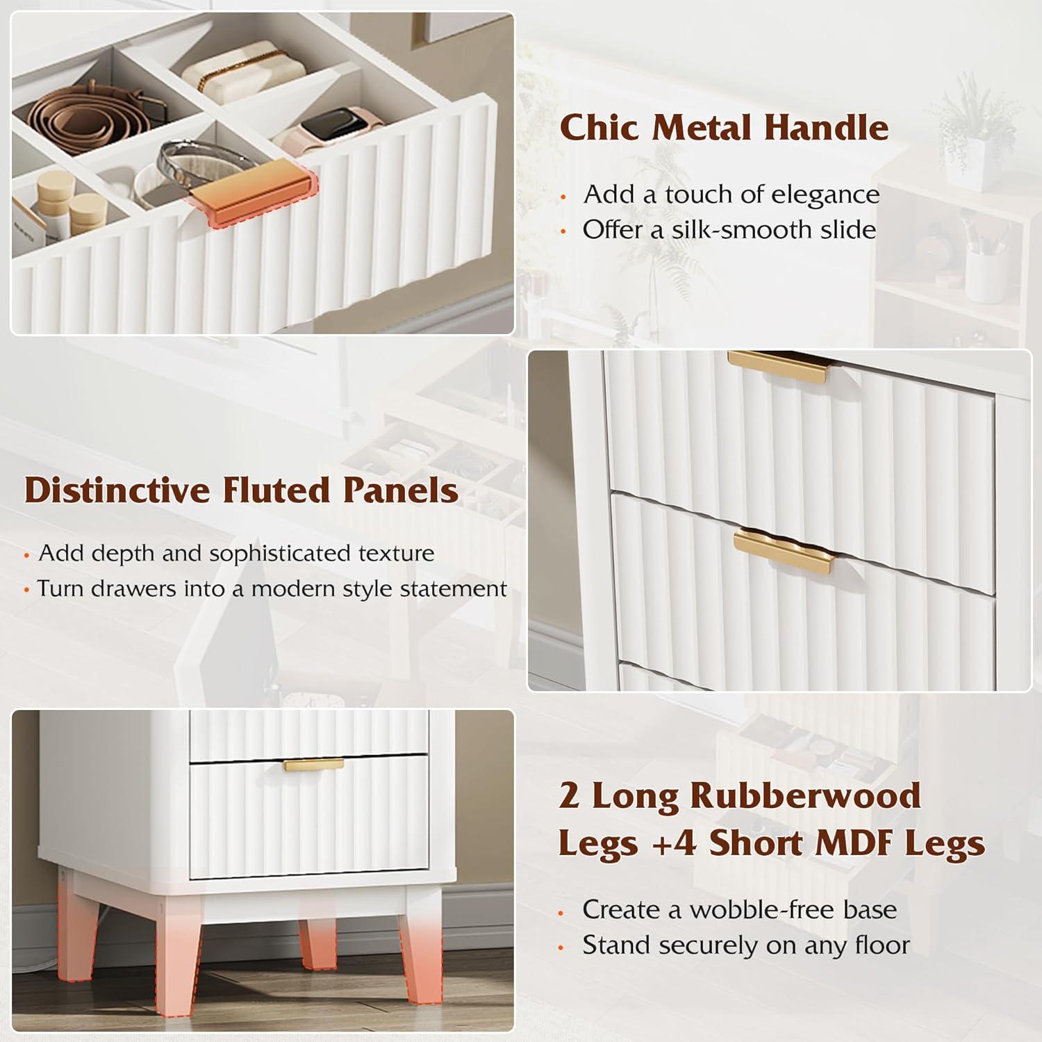imageWLIVE Fluted Vanity Desk with Mirror and Lights Makeup Table with 5 Drawers and Storage Shelves Bedroom Dressing Table with Charging Station BlackClassic White