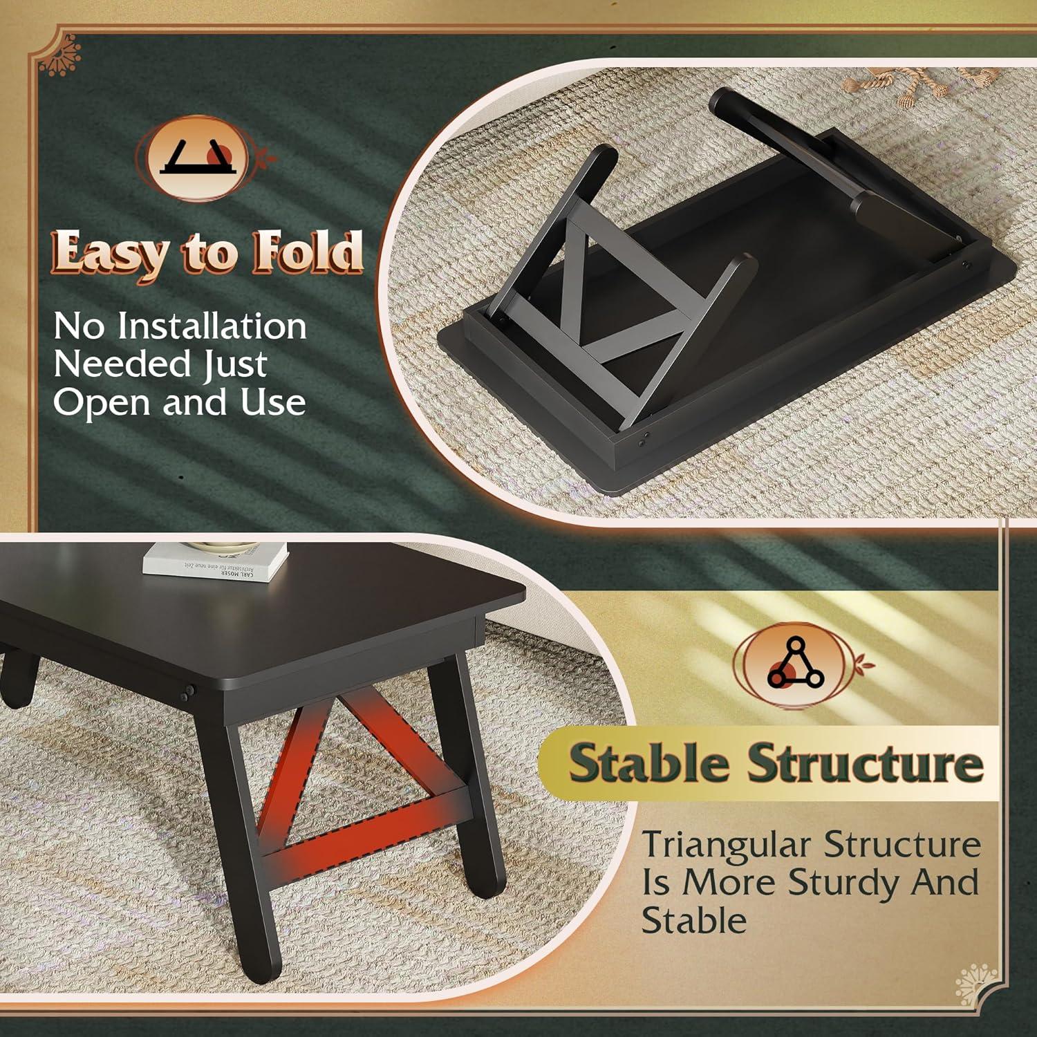 【Convenient No Assembly】Experience the ultimate convenience with our folding coffee table that requires no assembly. Your setup is done in moments—just unfold the legs and enjoy!