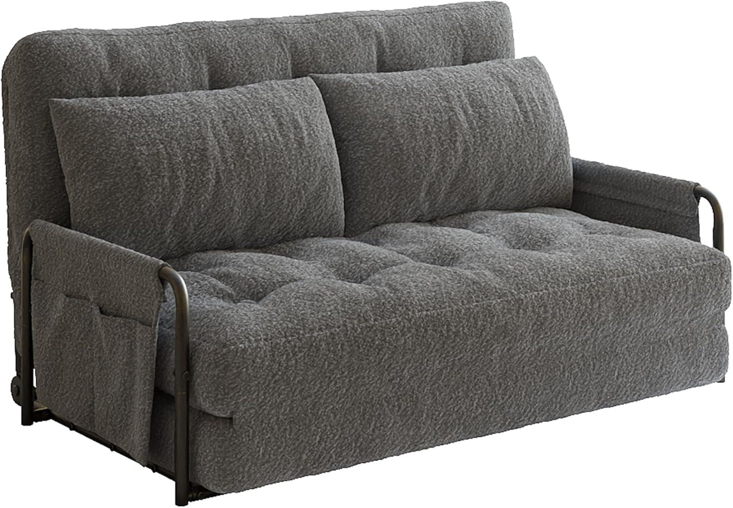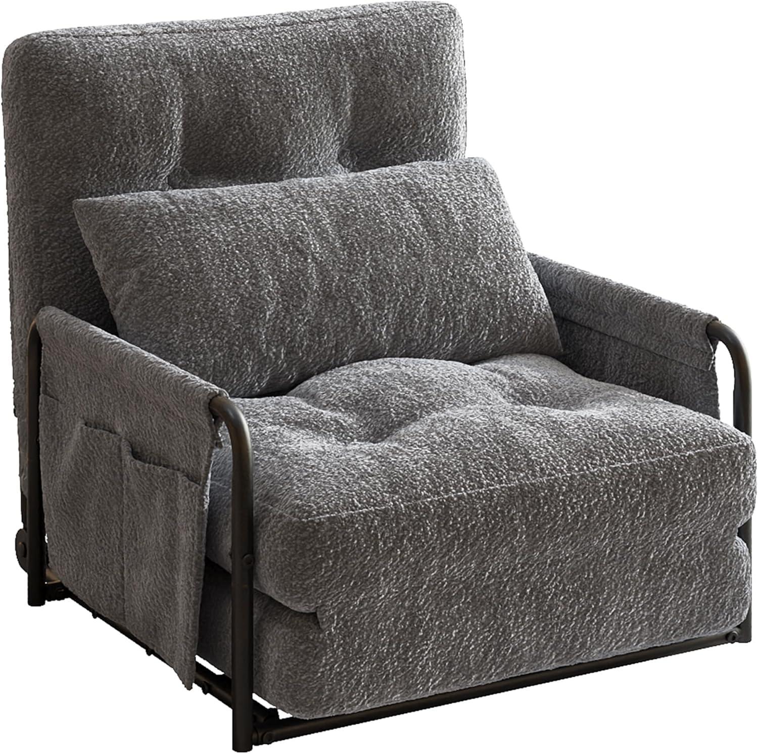 WLIVE Futon Sofa Bed, Floor Chair with Adjustable Backrest, Bean Bag Bed for Adults, with Armrest, Pillow, Low Profile for Living Room, Reading, Bedroom, Single, Beige(Grey)