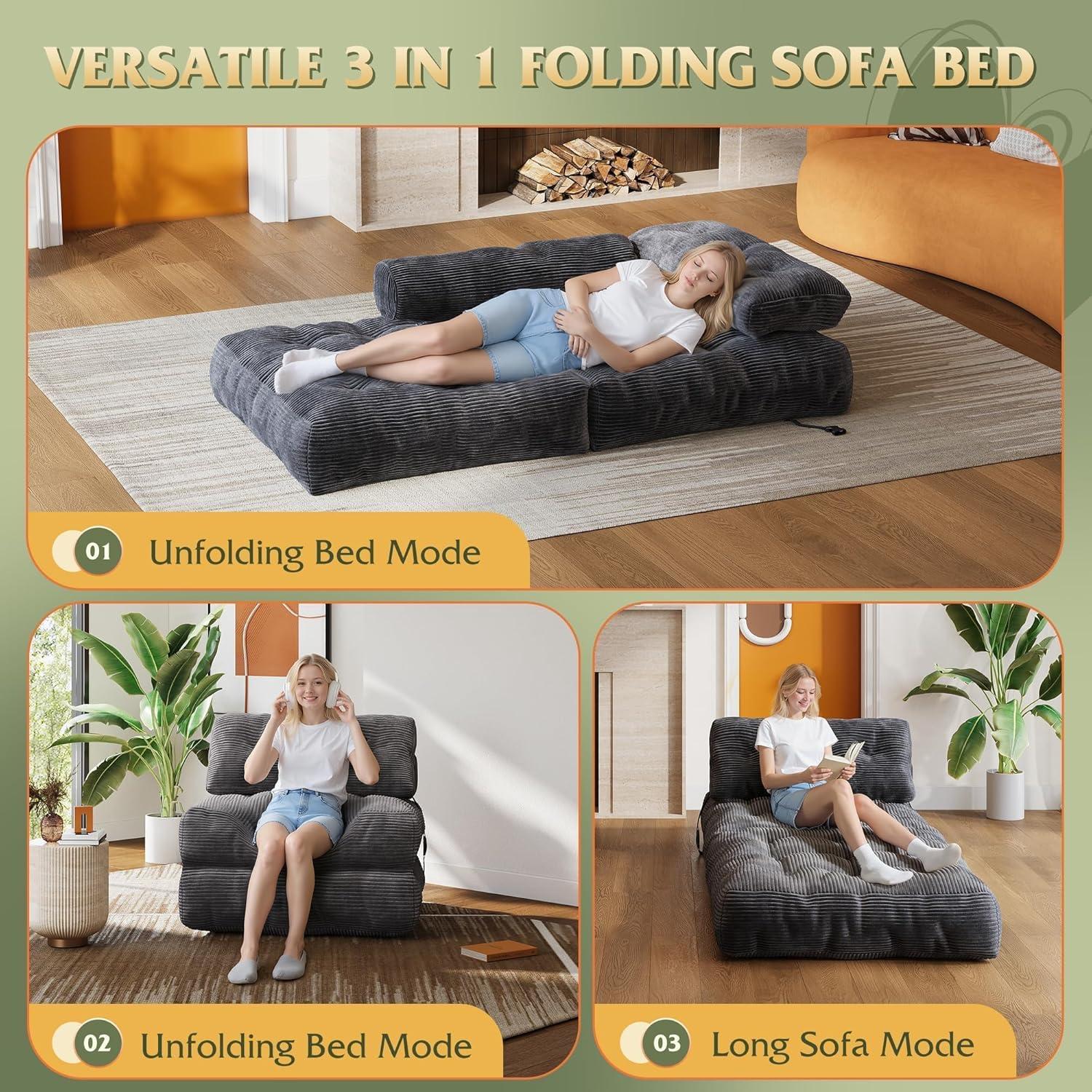 Be the first to review “WLIVE Futon Sofa Bed, Floor Chair with Adjustable Backrest, Bean Bag Bed for Adults, with Armrest, Pillow, Low Profile for Living Room, Reading, Bedroom, Single, Beige(Grey)”