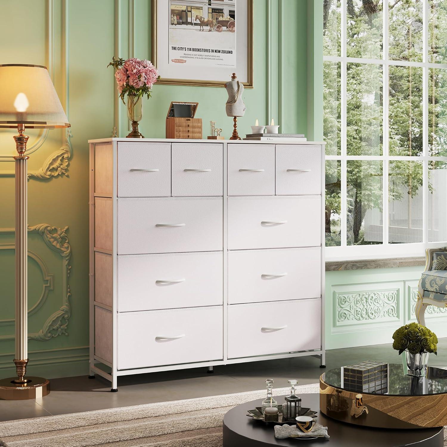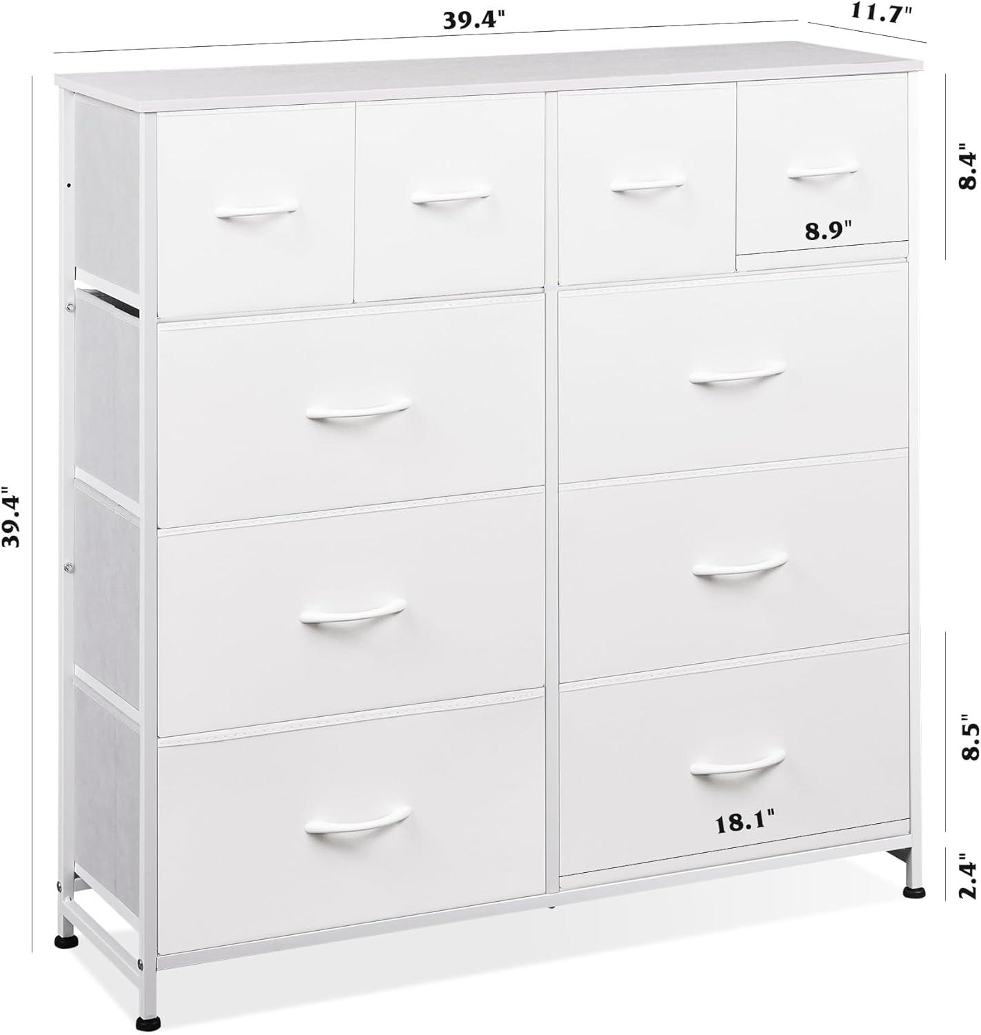 WLIVE Large Dresser for Bedroom, Fabric Dresser with 10 Drawers, Storage Tower with Fabric Bins, Double Dressers, Chest of Drawers for Closet, Living Room, Hallway, Dark Grey(A-white)
