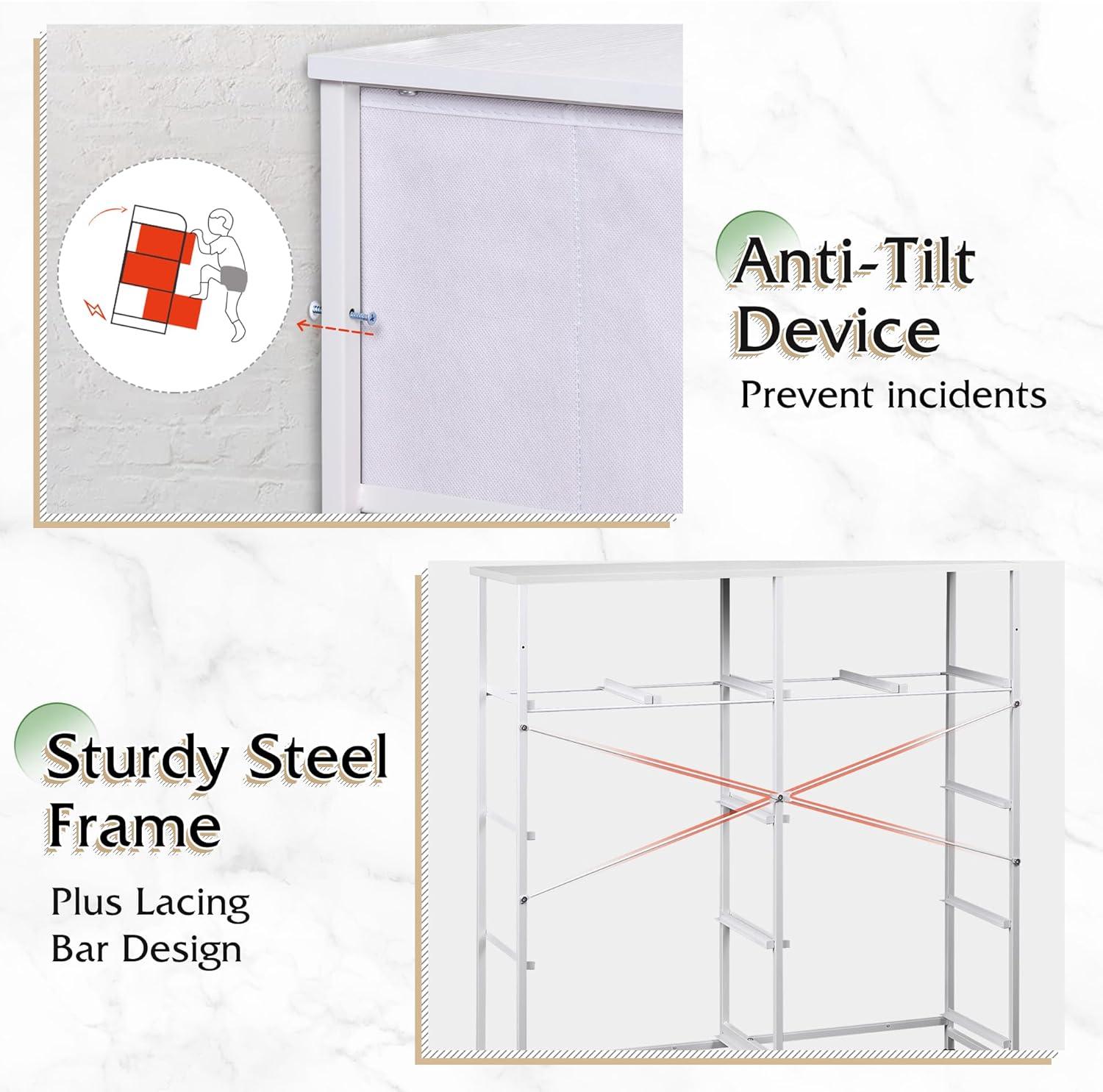 【✨ Stable Structure Safety Assured】This dressers & chests of drawers is designed with 15mm thickened metal steel frame with cross support rods for durability. The bedroom dresser bearing up to 100LBS can still remain stable without tipping. Additional anti-tilt device can easily fix the cabinet to the wall, ensuring the safety of you, your family and pets, and enjoying a convenient life!