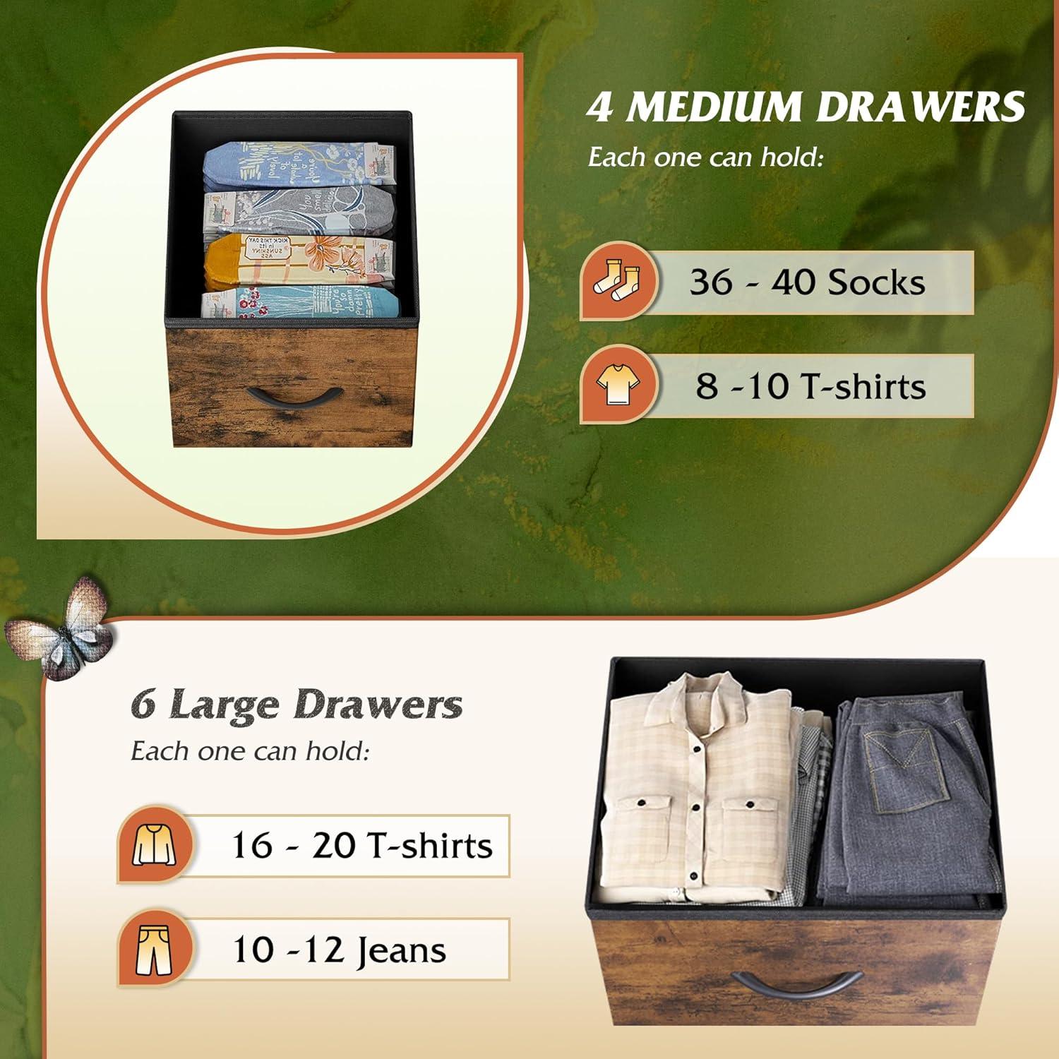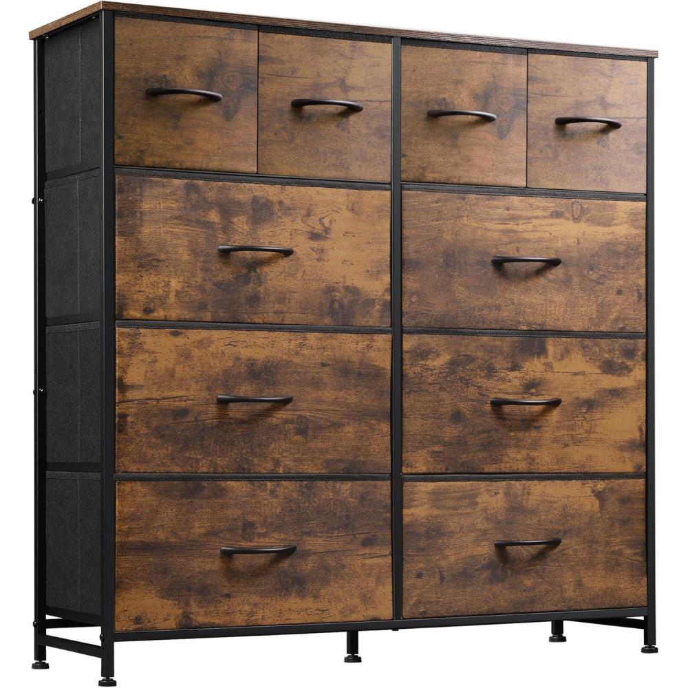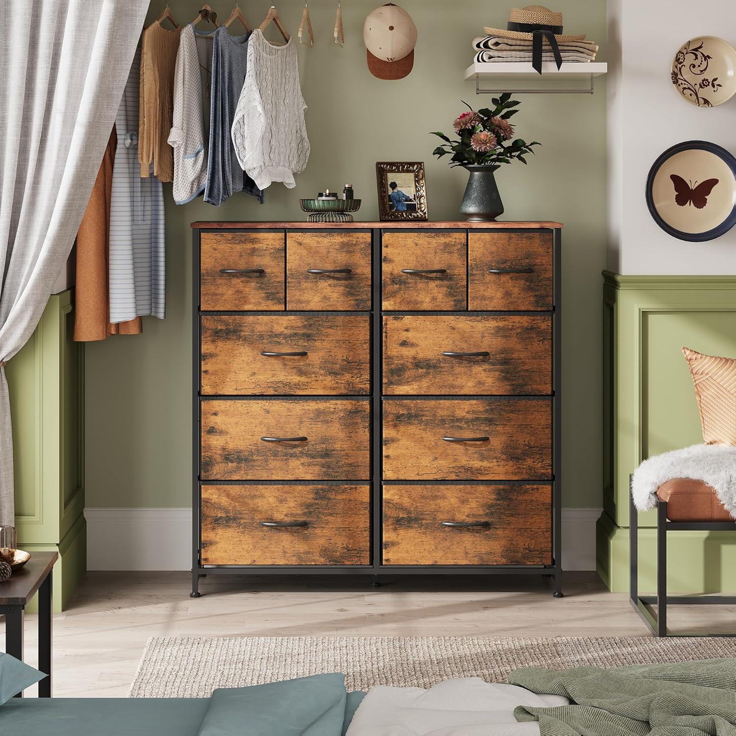 WLIVE Large Dresser for Bedroom, Fabric Dresser with 10 Drawers, Storage Tower with Fabric Bins, Double Dressers, Chest of Drawers for Closet, Living Room, Hallway, Dark Grey(Black and Rustic Brown)