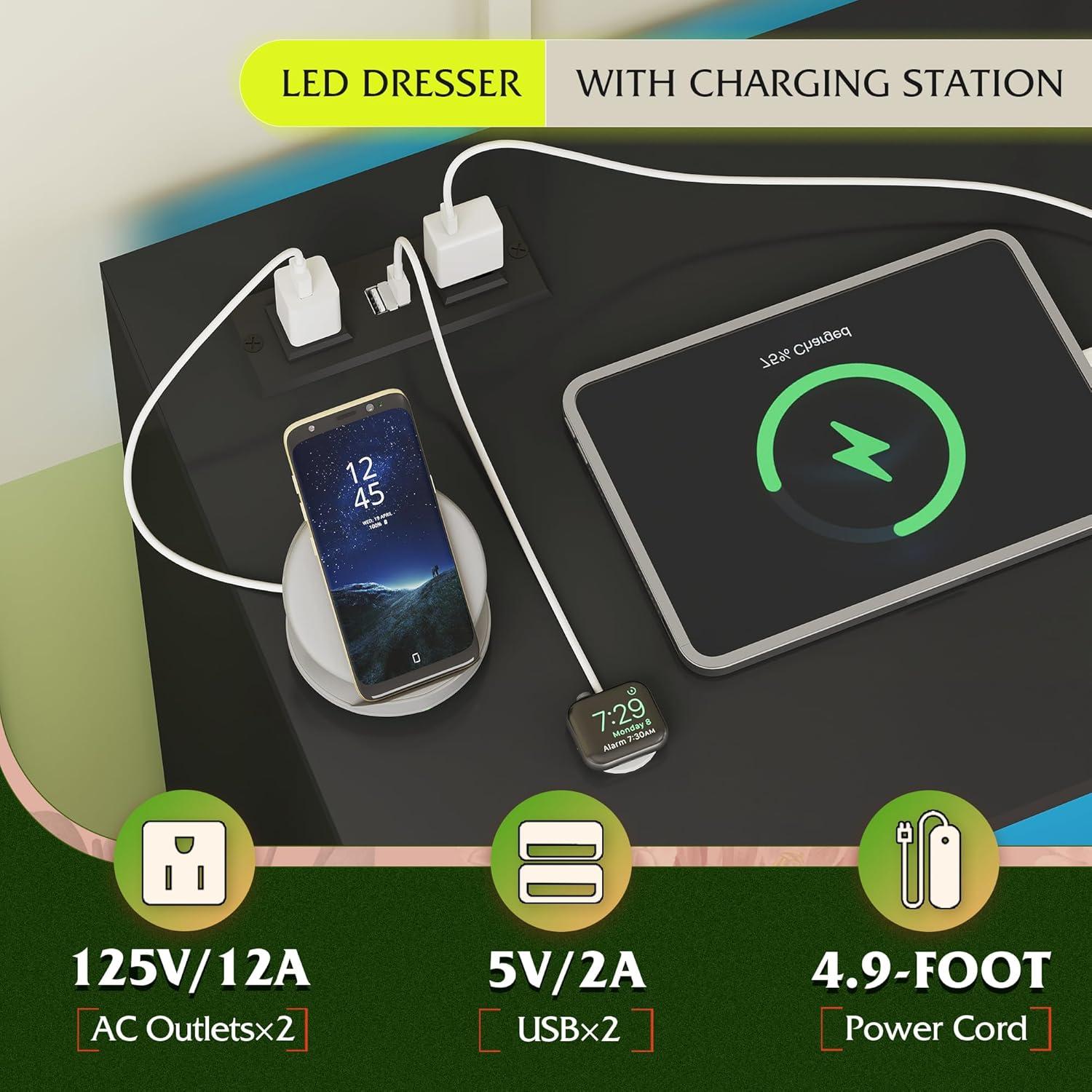 🎄【Powered Storage Dresser】Say goodbye to messy wires! The 4 drawer dresser is equipped with 2 AC sockets and 2 USB ports, 1.5m flexible cable length. The game consoles and routers a power board can be done, instant increase desktop cleanliness by 50%. The LED dresser has passed UL/ETL certification, ensuring worry-free electrical safety!