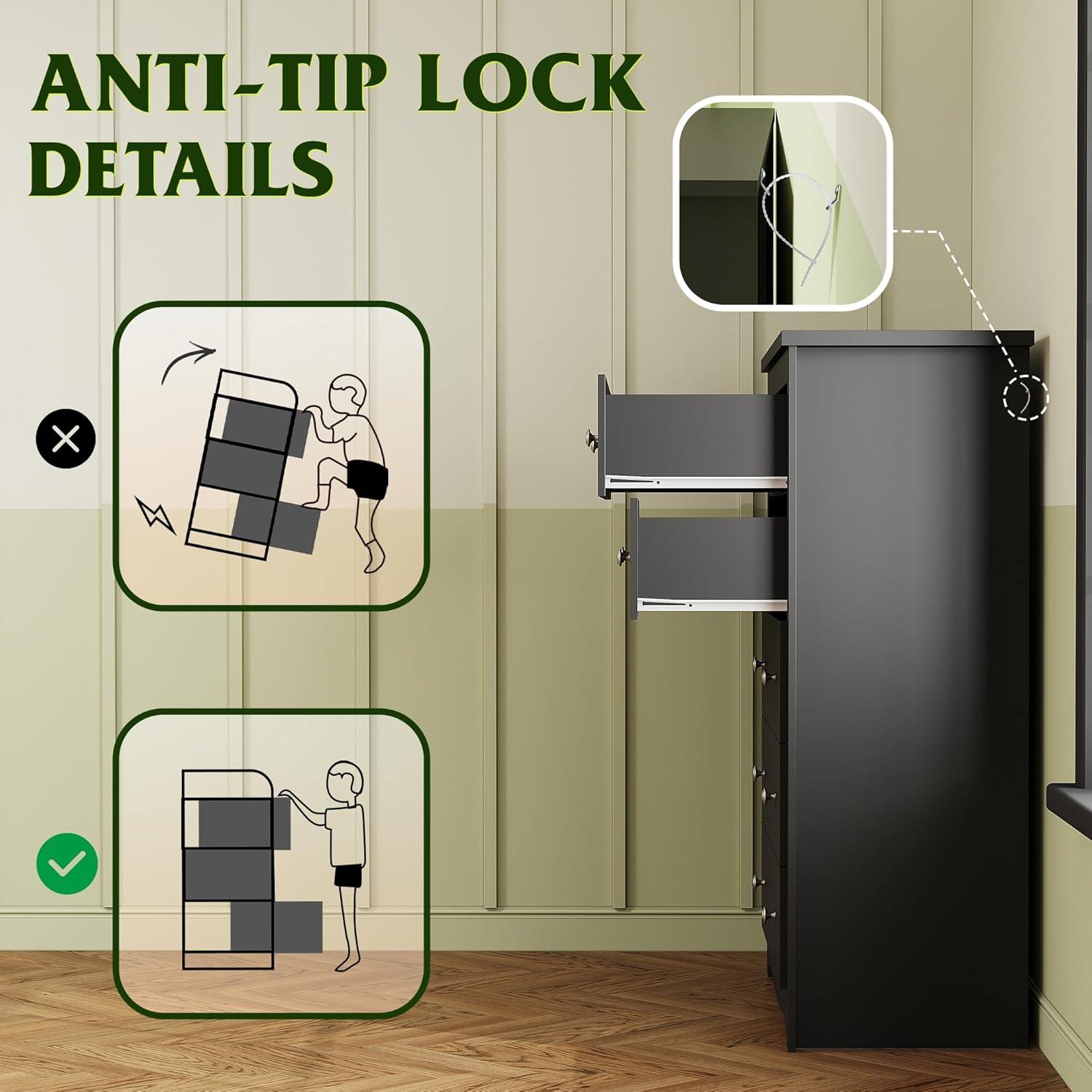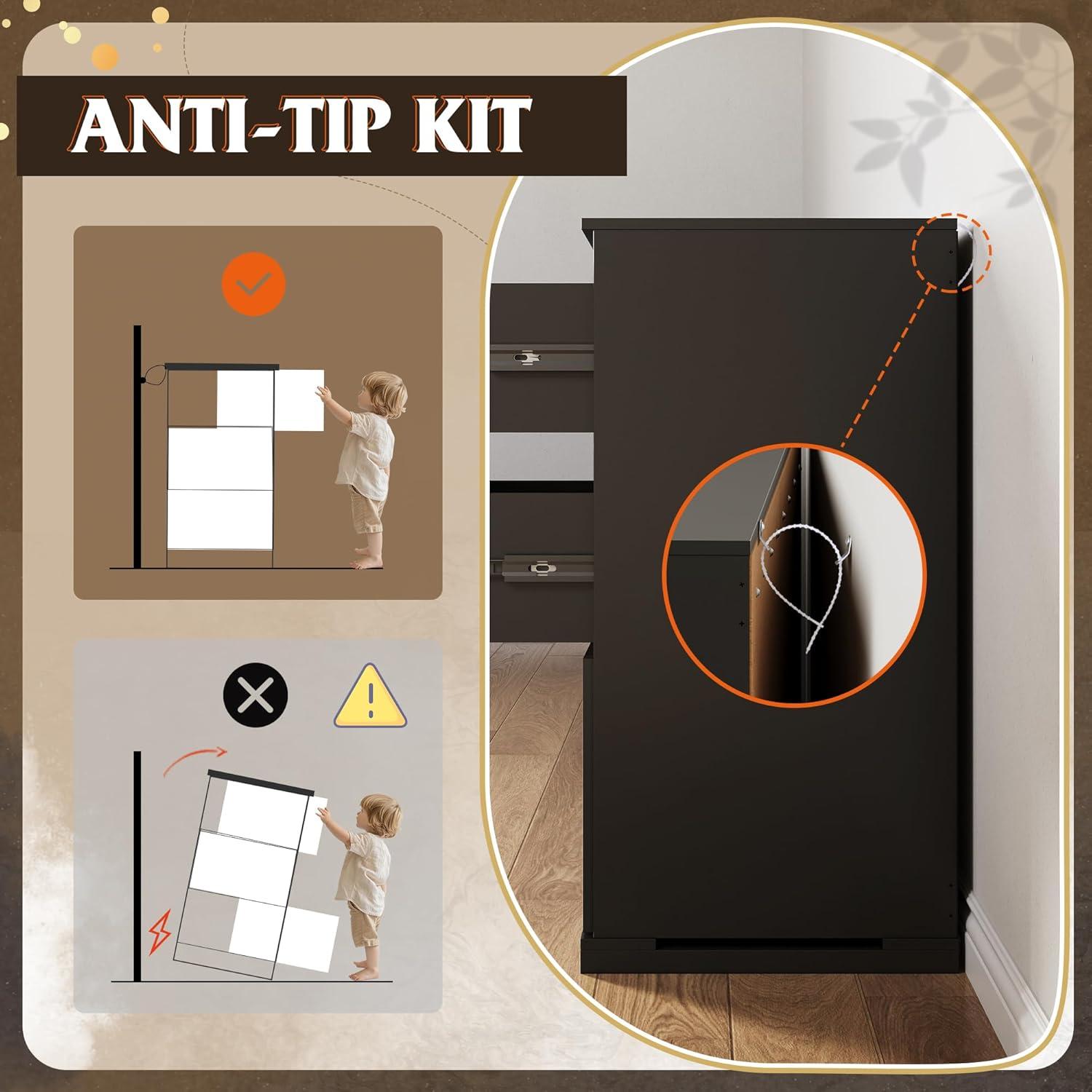 🎄【Stable and Durable】The chest of drawers is made of high quality artificial wood, which is scratch-resistant, easy to clean and the countertop can bear up to 55lbs. The drawer is equipped with smooth rails and strong metal handles to ensure that every push and pull is easy and smooth. The extra support plate at the bottom of the drawer makes the drawer more load-bearing. Additional anti-tilt device can easily fix the cabinet to the wall, ensuring the safety of you, your family and pets!