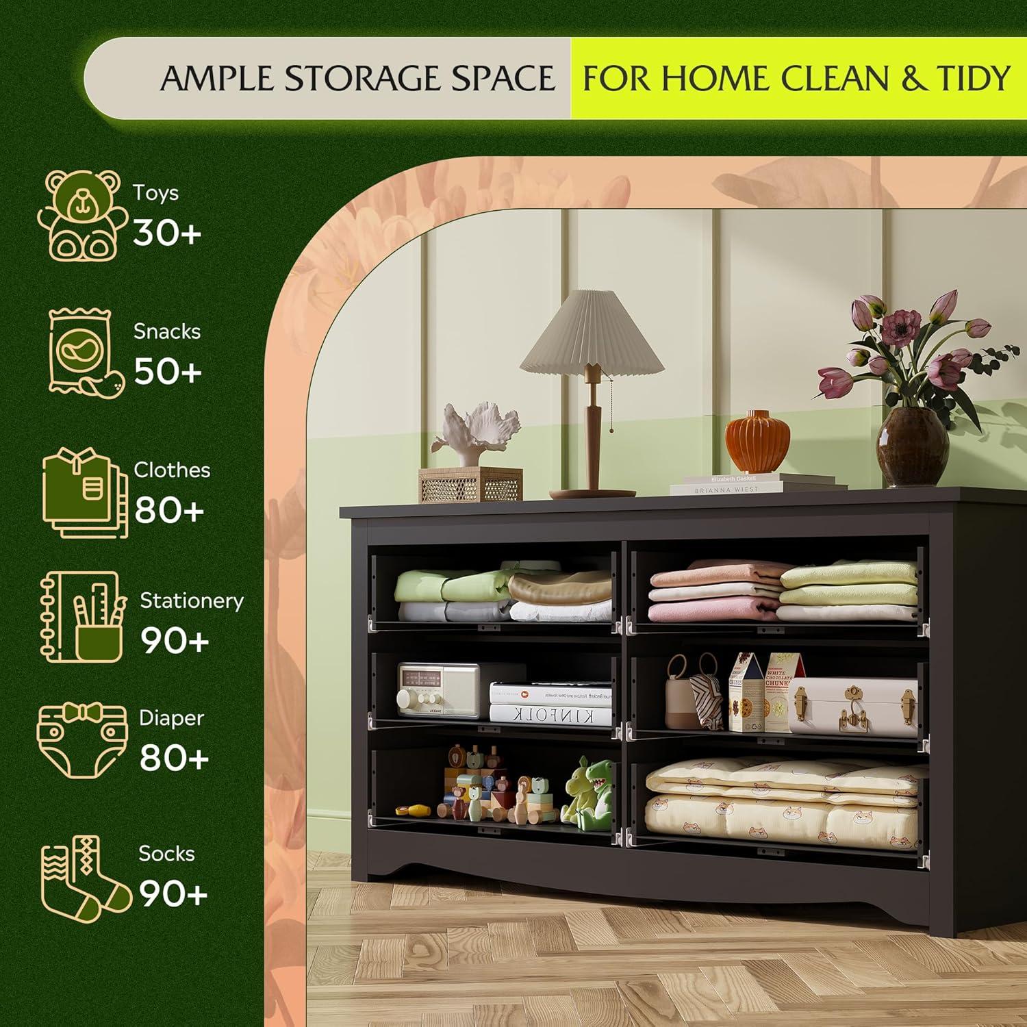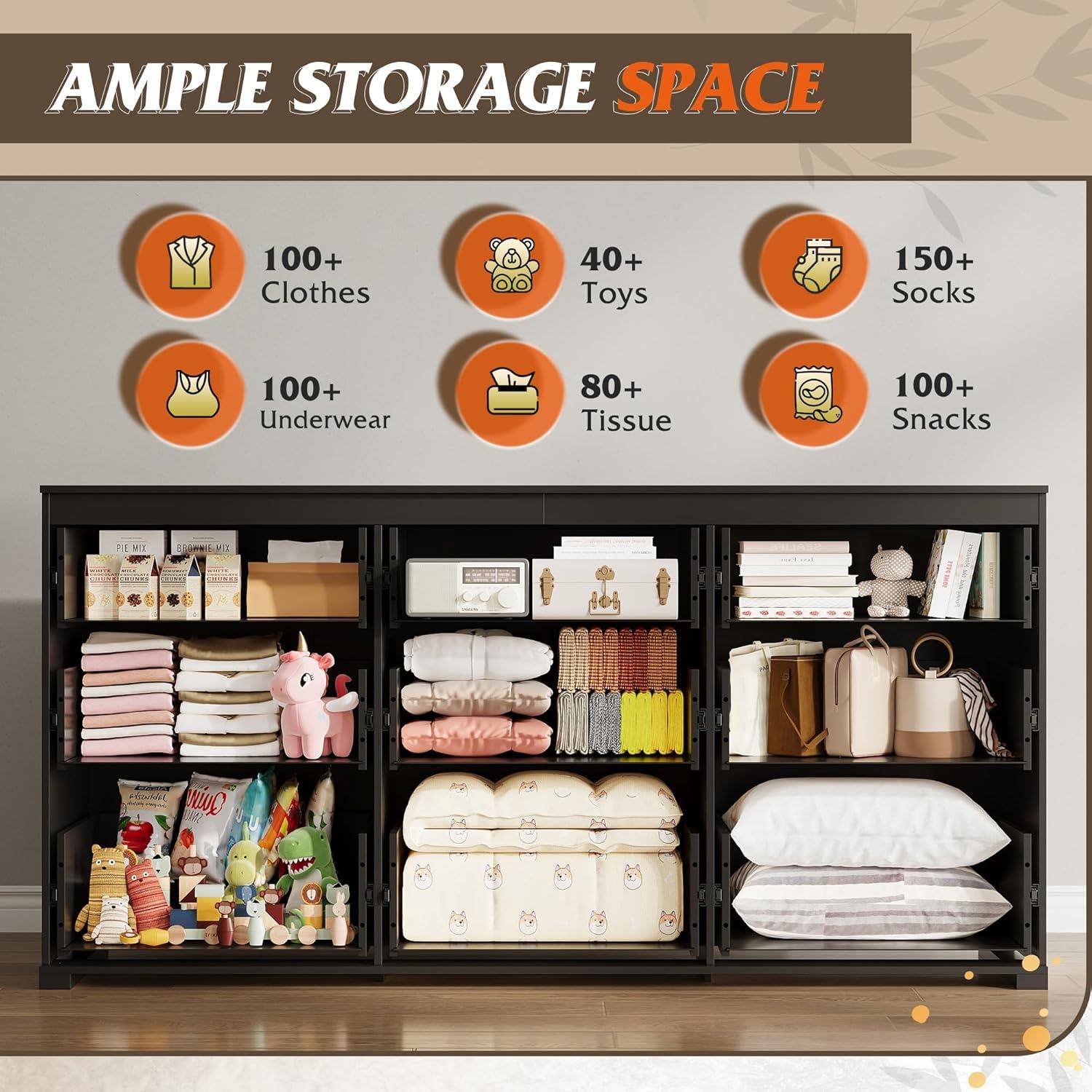 🎄【Dresser with LED Lights】The storage cabinet is equipped with LED lights and the light strips can be freely pasted. Through the remote control or APP to easily control 12 scene modes and 6000 colors, speed and brightness can be adjusted. It flexibly adapts to various scenes such as bedroom, living room, e-sports room, and the lighting can be synchronized with music to provide a personalized atmosphere for movie nights, games, and family gatherings!